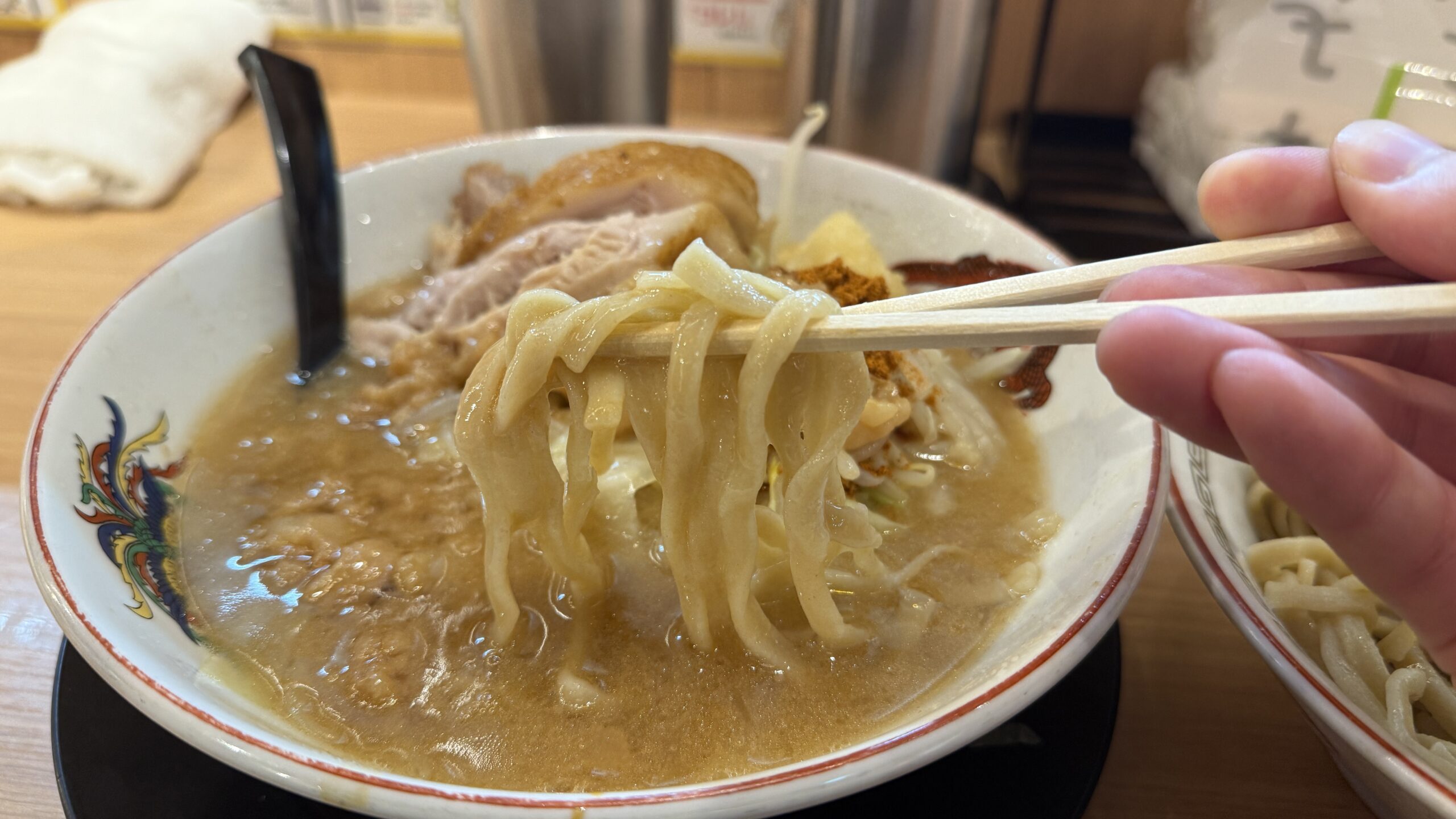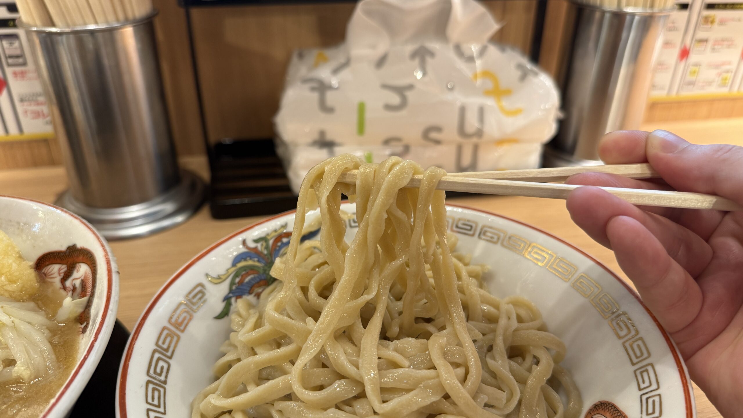 つけ汁というかスープ自体は豚骨ではあるので、そこに魚粉が加わることで、実質魚介豚骨に化けます。