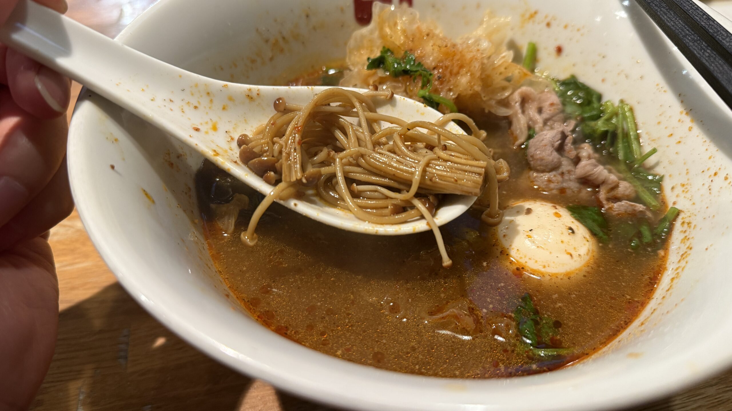 以前『田町店』で食べた際は辛さ3にしたら辛くて食べるのがキツイと思うほどでしたが、こちらの店舗はピリ辛程度です。