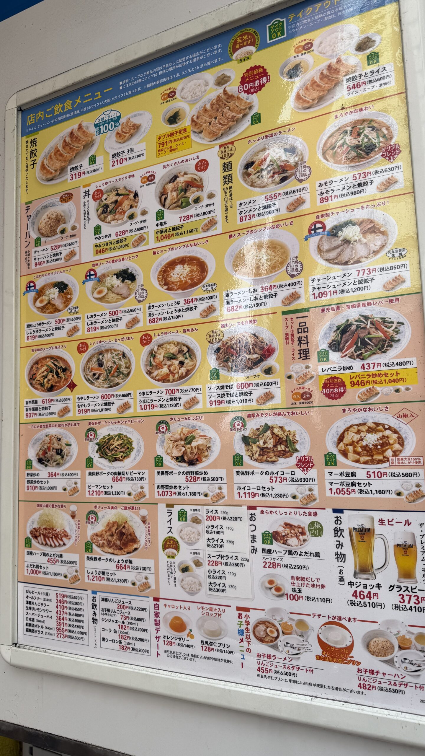 餃子以外にもザ・中華チェーンというようなメニュー構成です。
