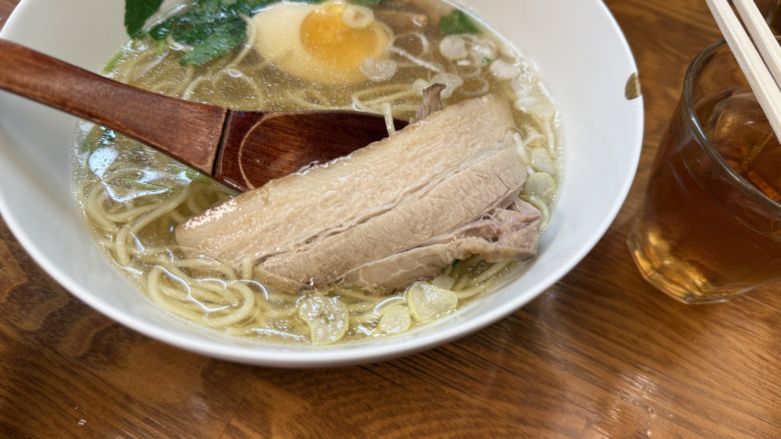チャーシューは後半まで取っておいてスープに沈めておくと、豚の味わいがスープにプラスされます。