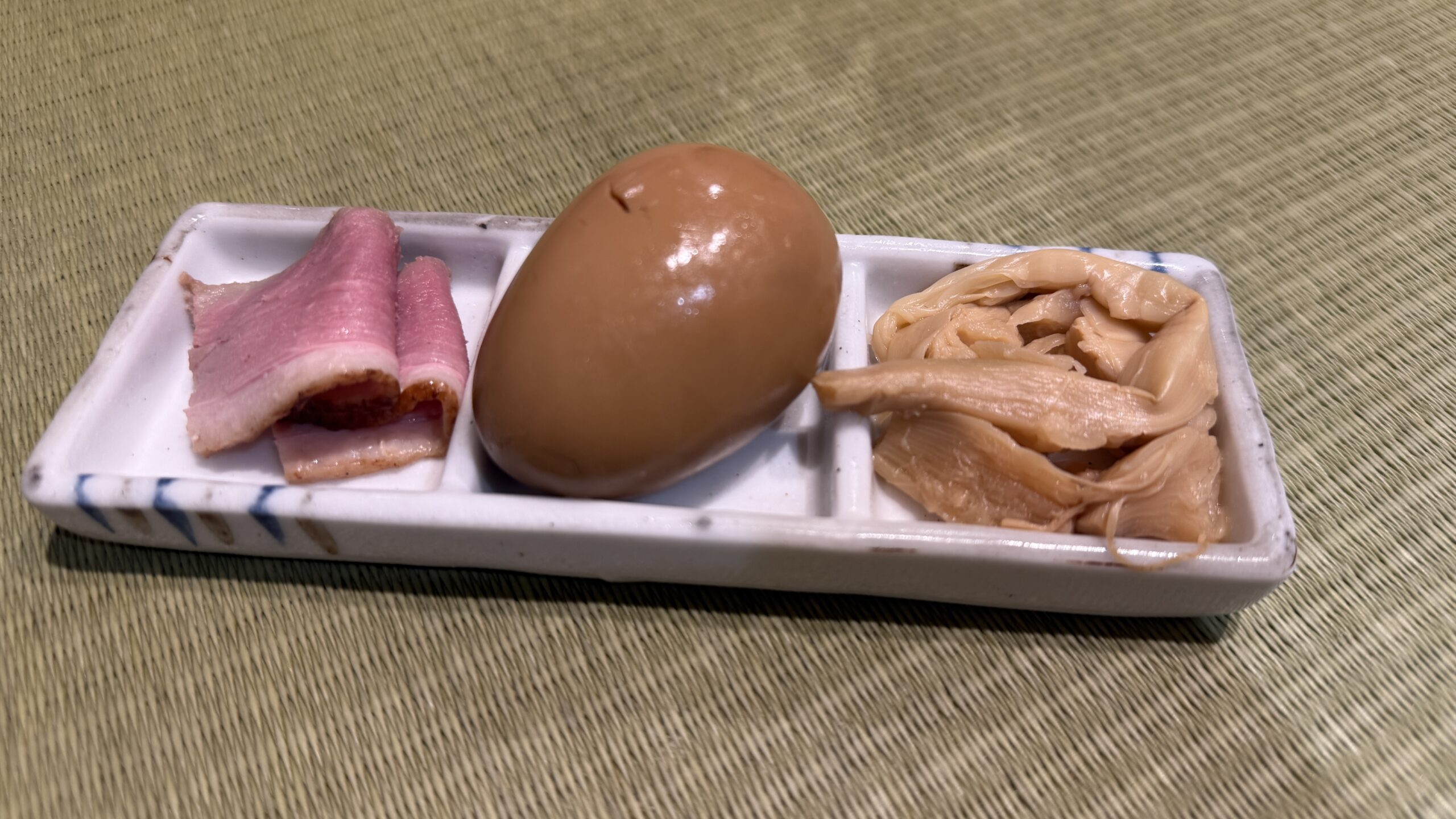 追加分の鴨のコンフィ、味玉、メンマに関しては別皿にて提供されます。