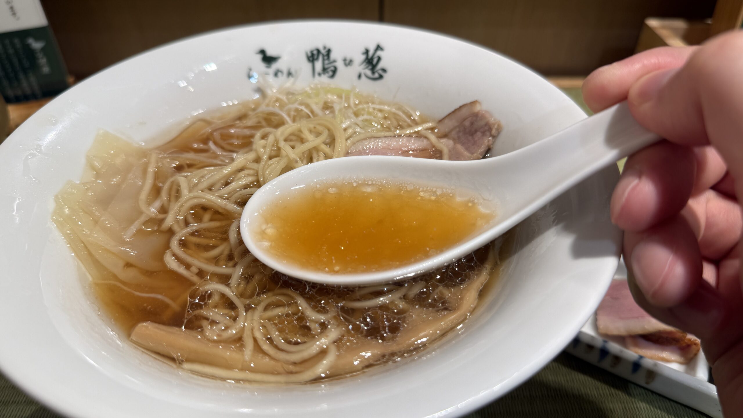 鴨と葱のみから出汁を取っているというその名の通りで、鴨の旨味と葱の甘みを感じ、そこにほんのりとカエシが効いています。