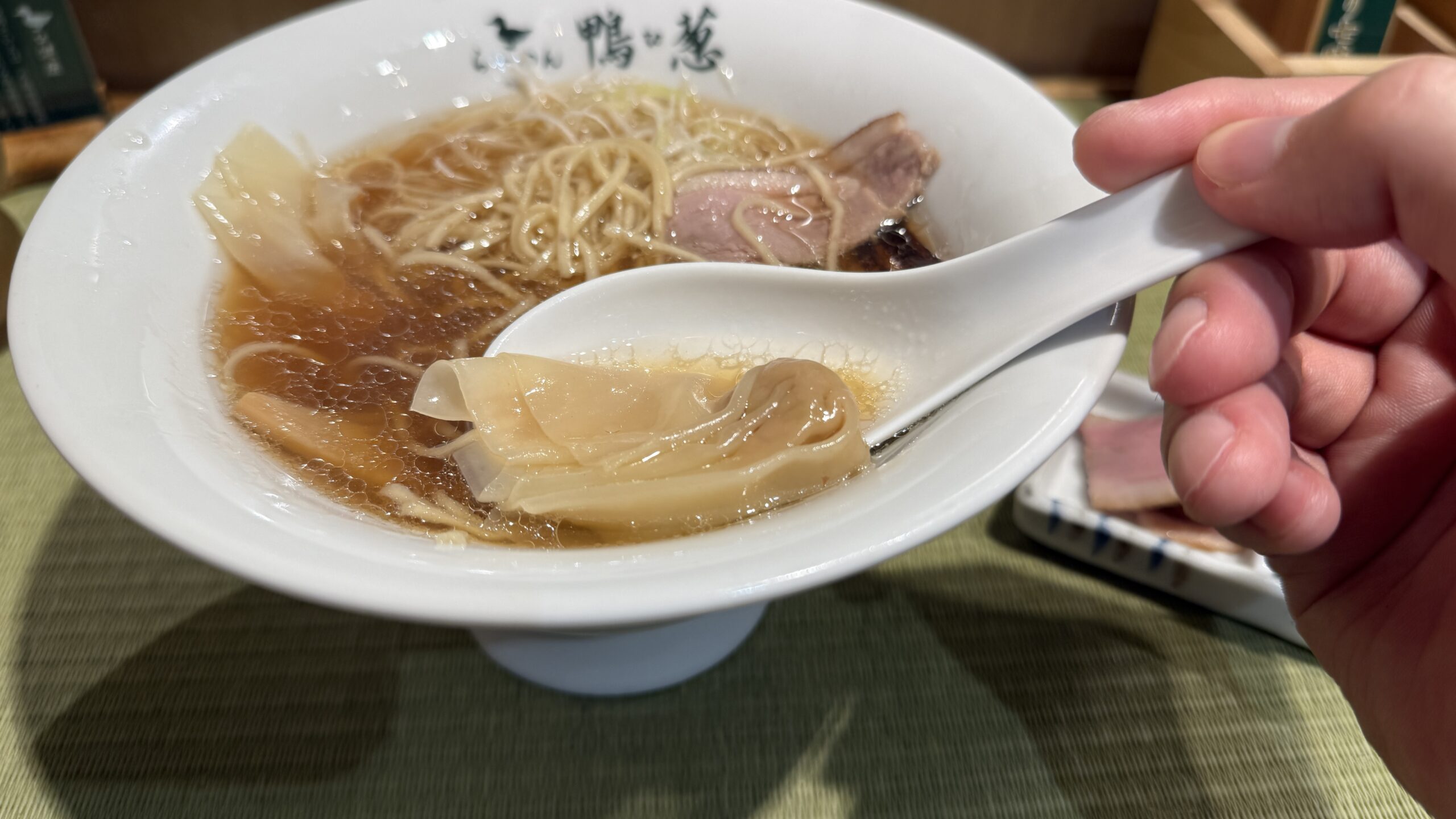 ワンタンは餡の印象弱めで、生地のチュルッとした印象を受けます。
