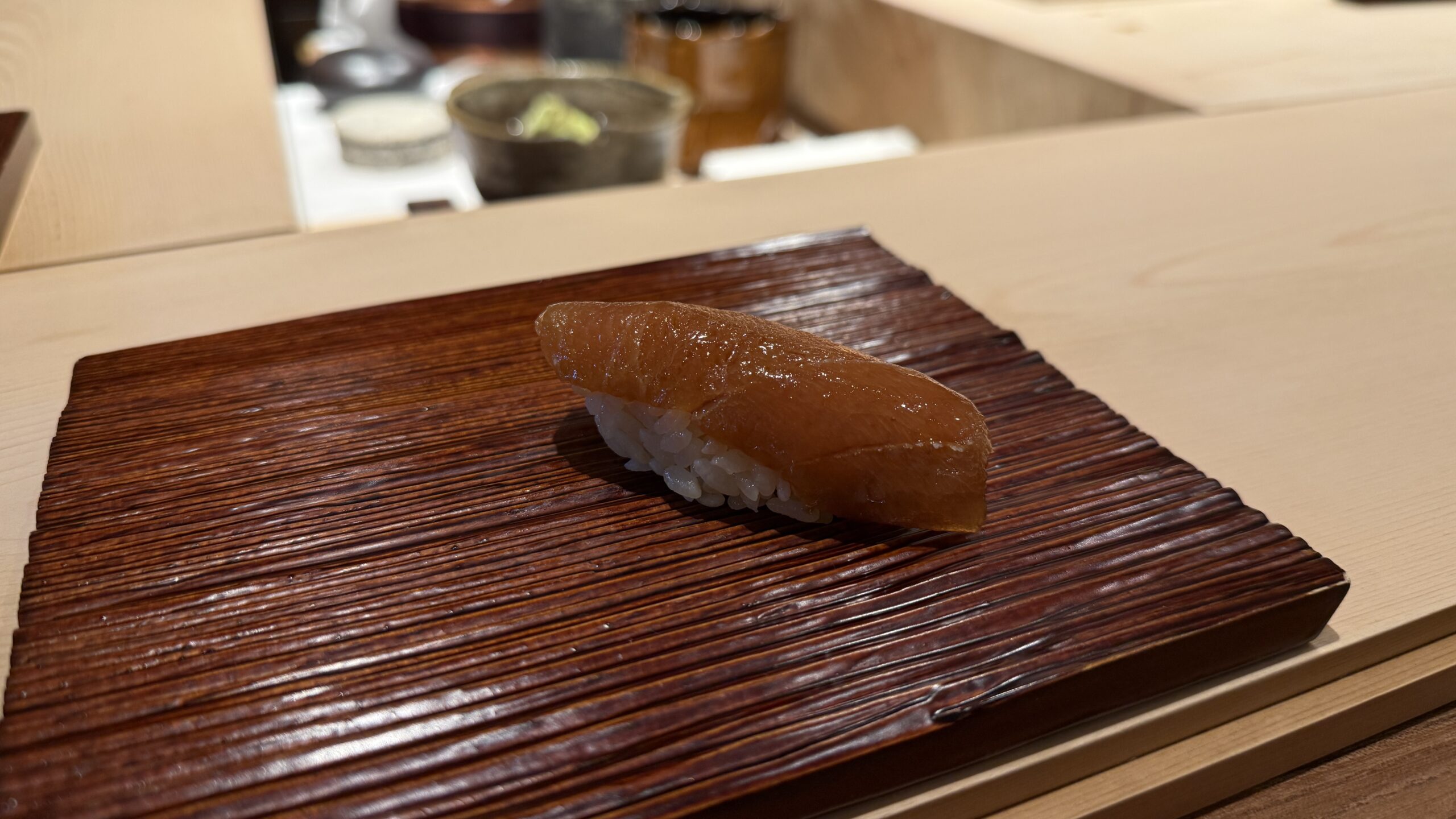 ねっとりとした食感と濃厚な味わいで、旨味と香りが余韻に残るというThe熟成鮨という1品でした。