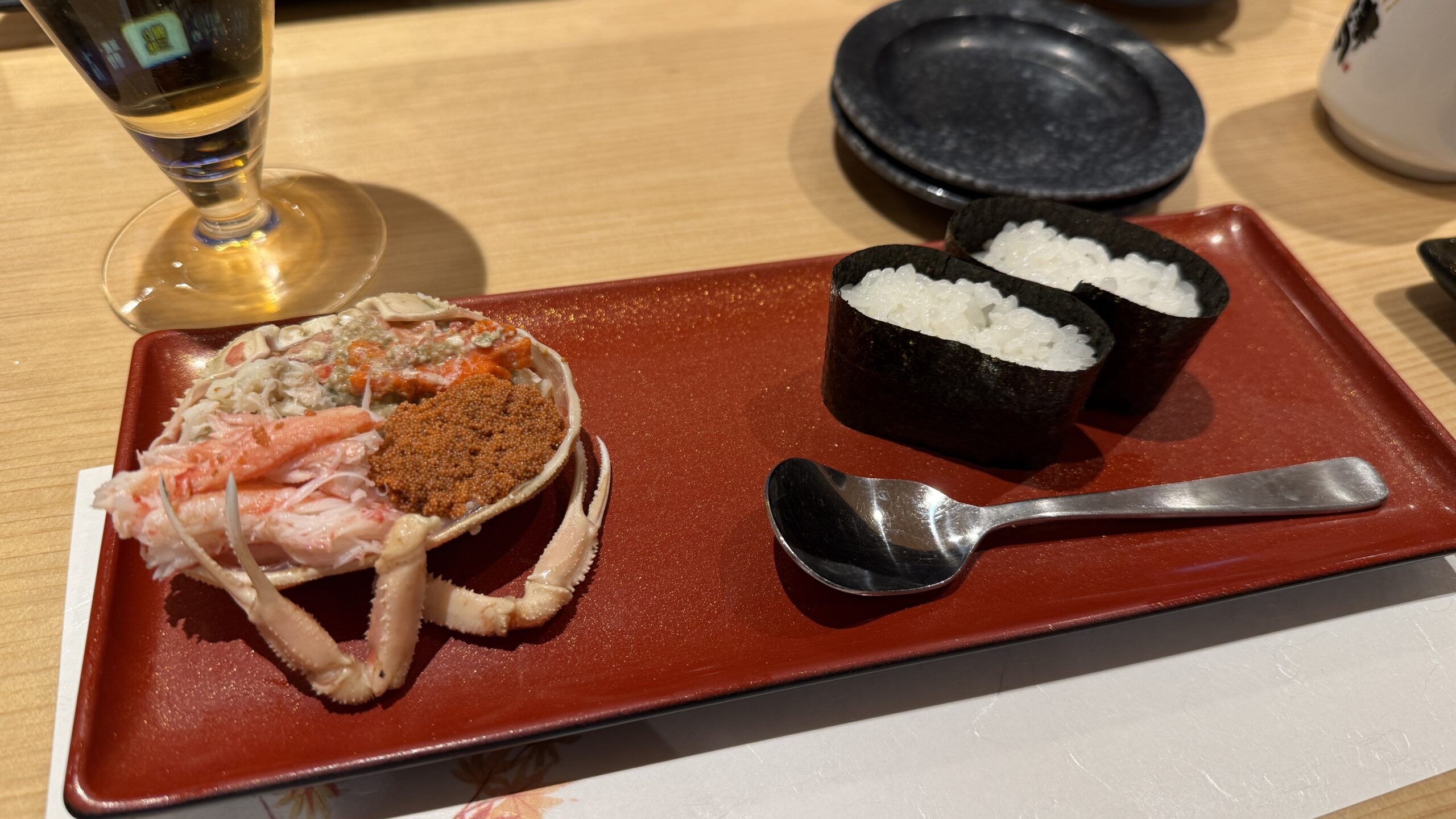 香箱ガニとニシンにたまらず日本酒を注文しました。