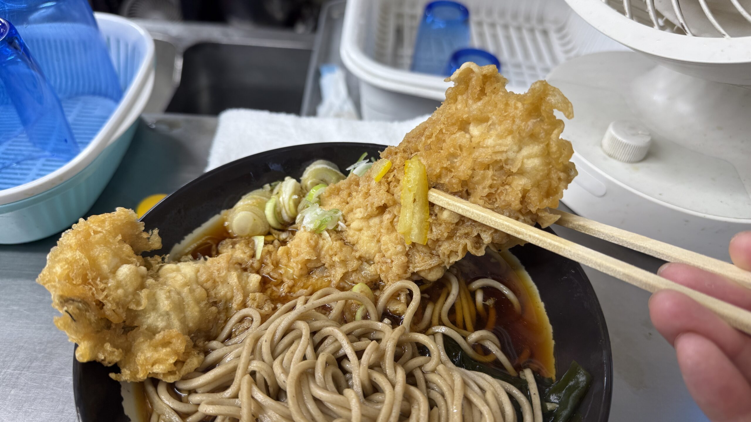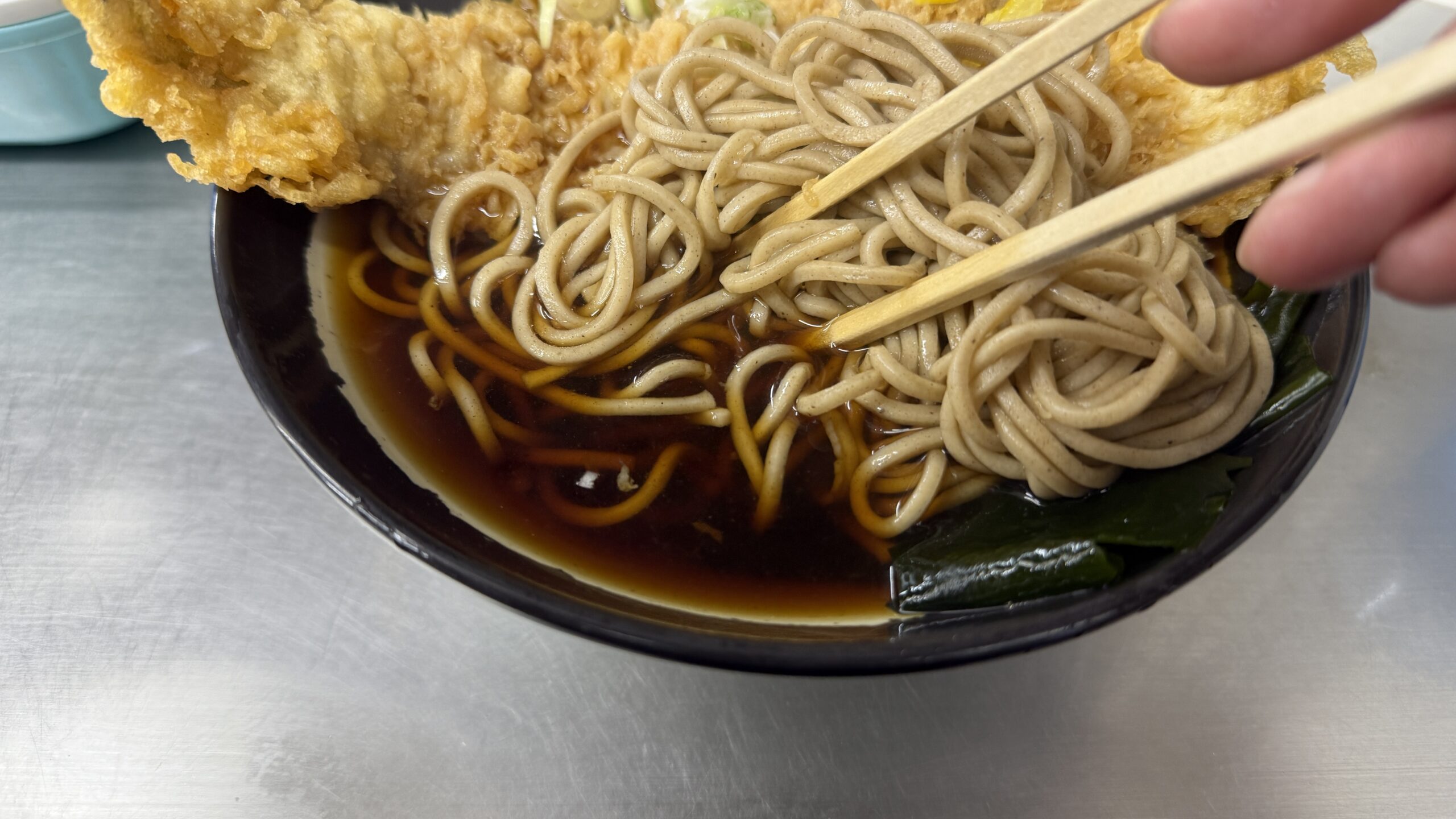 蕎麦のボソボソ感、つゆのカエシが効きすぎている感じ、穴子の衣の厚さ。。