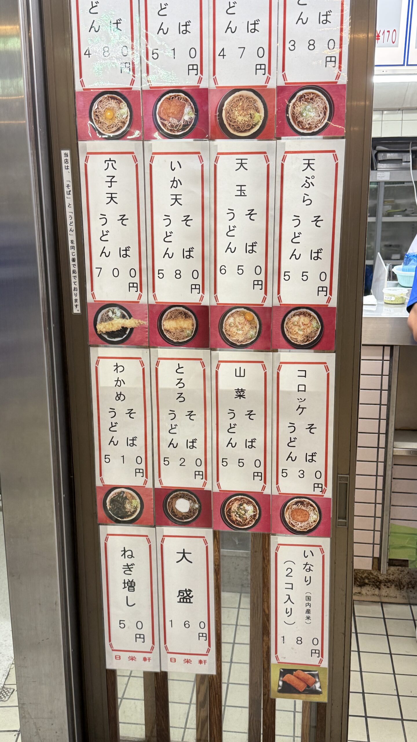 このままだと何も食べずに試合観戦をすることになりそうだったので、横浜駅の1つ前の東神奈川駅で電車を降り、ホームに漂う良い出汁の香りを頼りに『日栄軒』を訪れます。