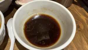 こちらのお店ではつけ麺の麺量が500gを超えるとつけ汁を2種類注文することができます。