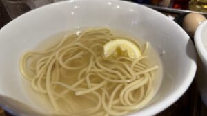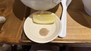 あとはトッピングで『味玉(150円)』+『藻塩+レモン(50円)』も選択しました。