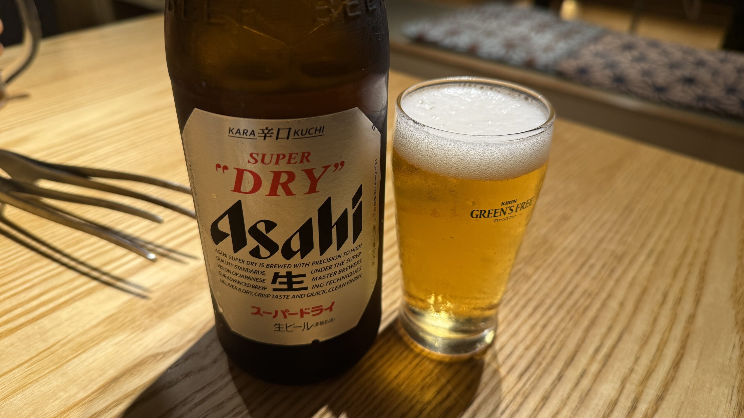 豊洲駅から豊洲千客万来まで15分ほど歩いてきたので、運動後のビールは美味しいですね。