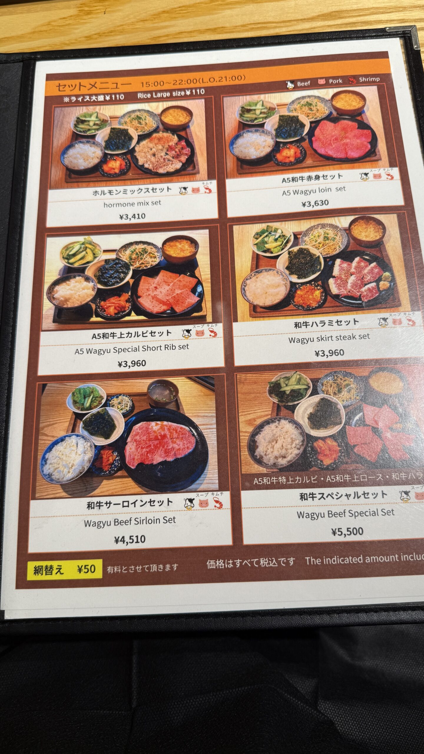 ホルモンが売りのお店ではありますが、カルビやロースといった正肉のメニューも豊富にあります。