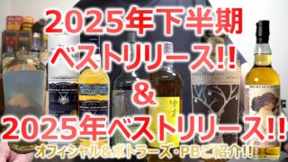 2025年下半期ベストリリース 今回は個人的に思う2025年下半期ベストリリースを決めていきます。 下半期に飲んだボトルの中で特に良かった・美味しかったと思うボトルをオフィシャルから3本、ボトラーズやプライベートボトルから3本挙げていきます...