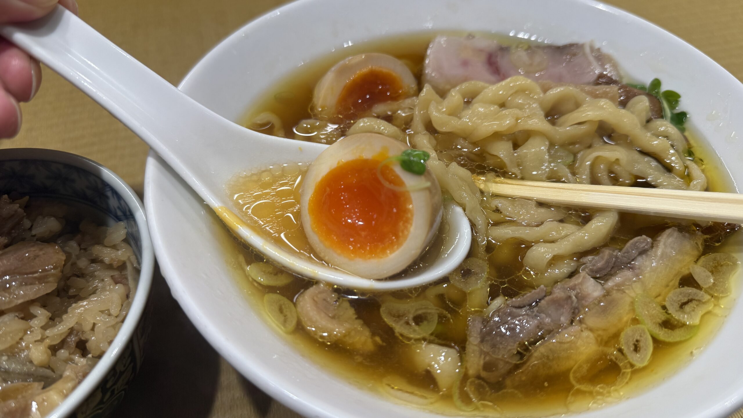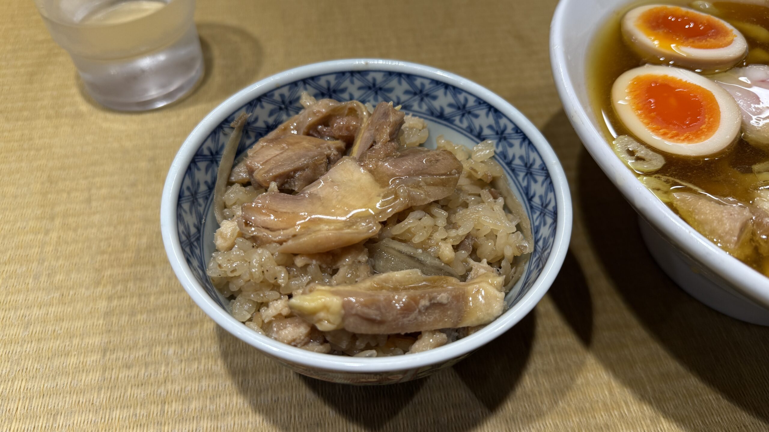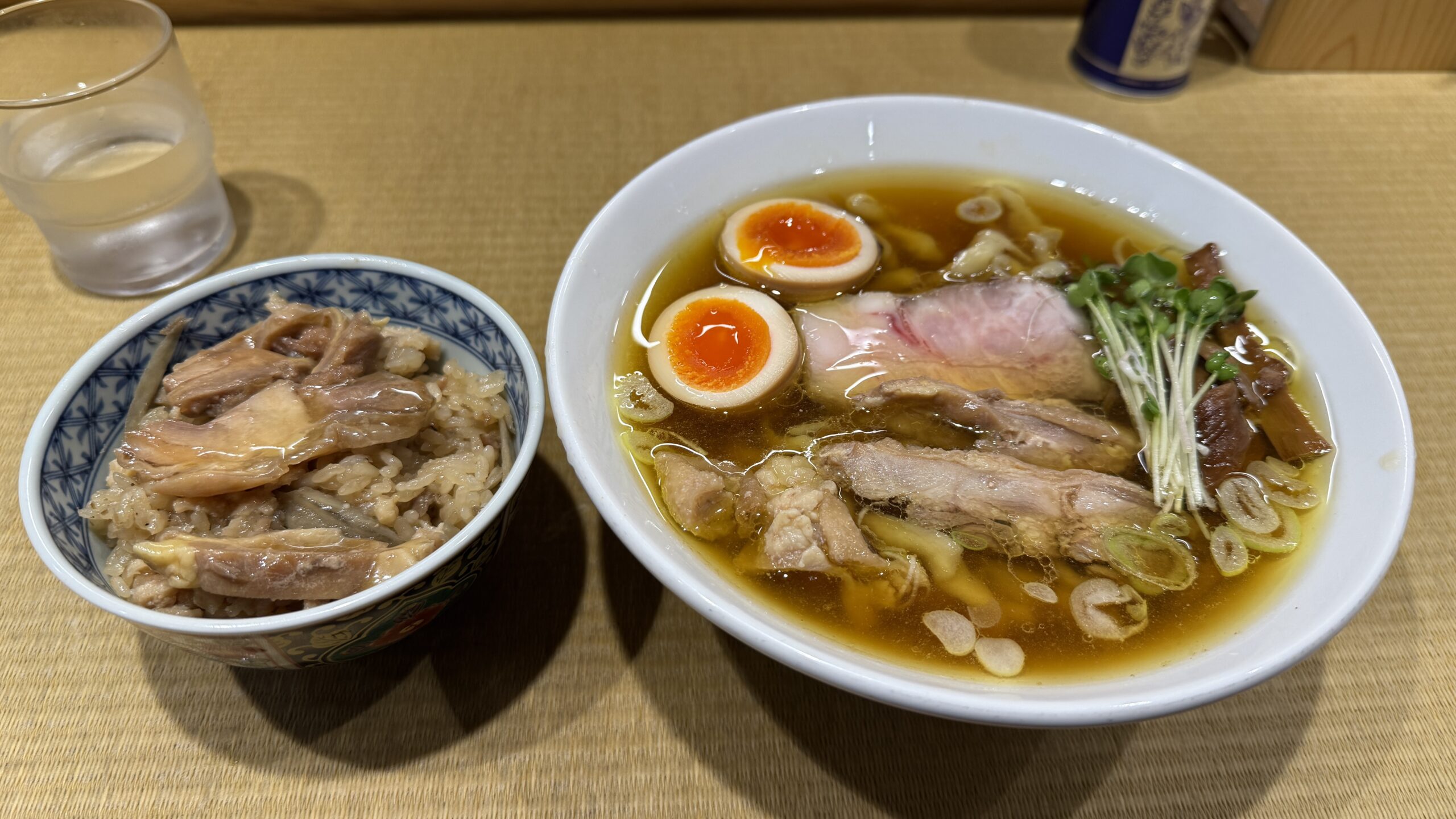 今回は『味玉中華そば(1,050円)』と『親鶏飯(320円)』を選択しました。