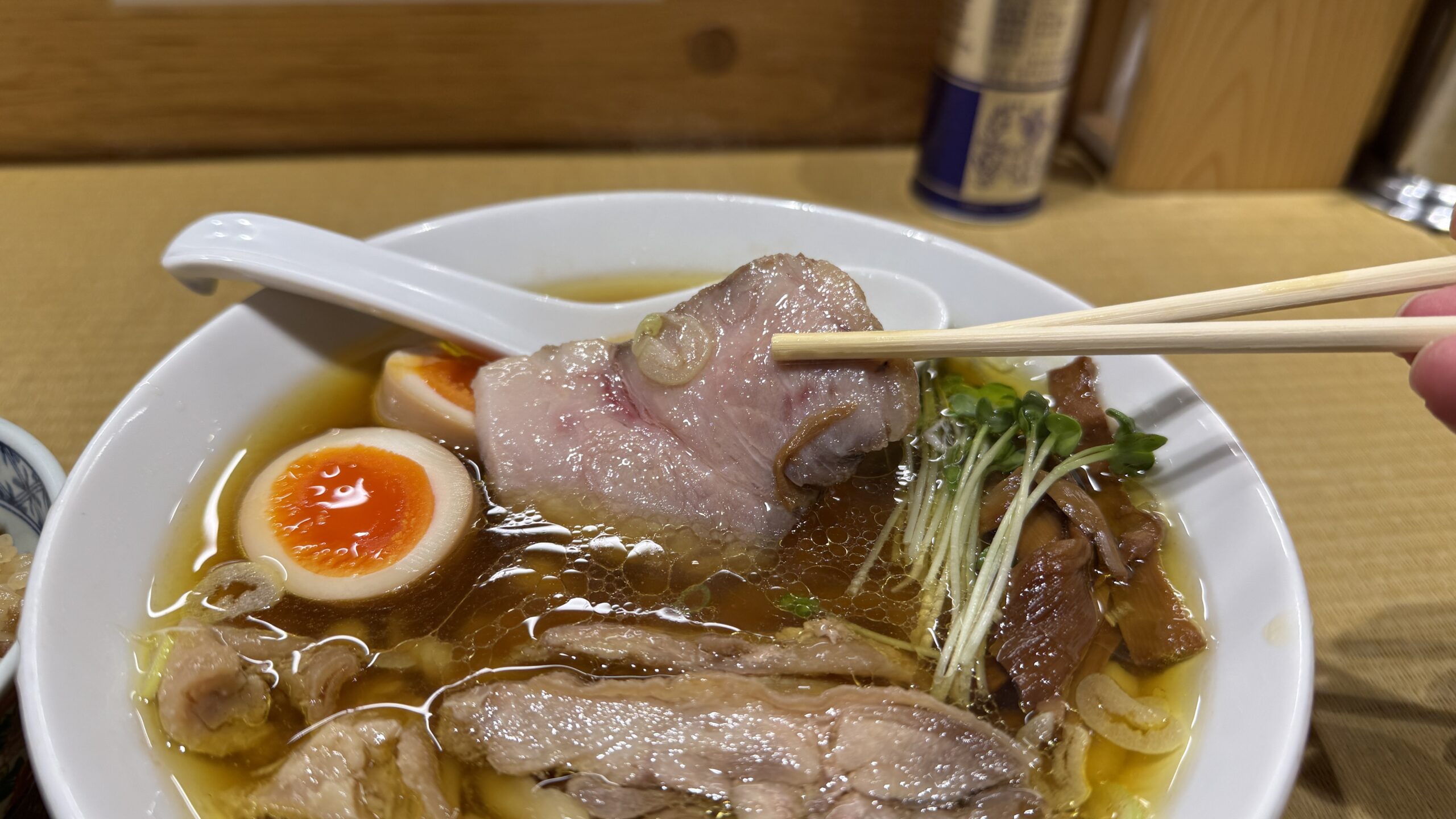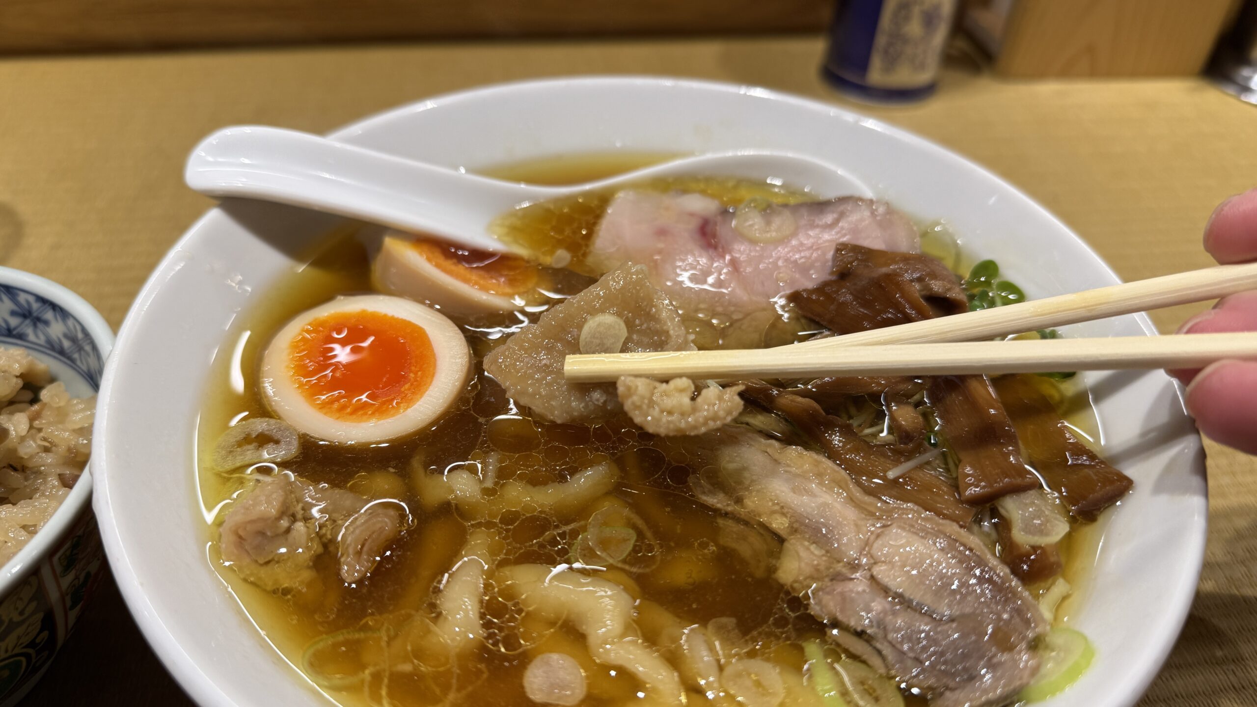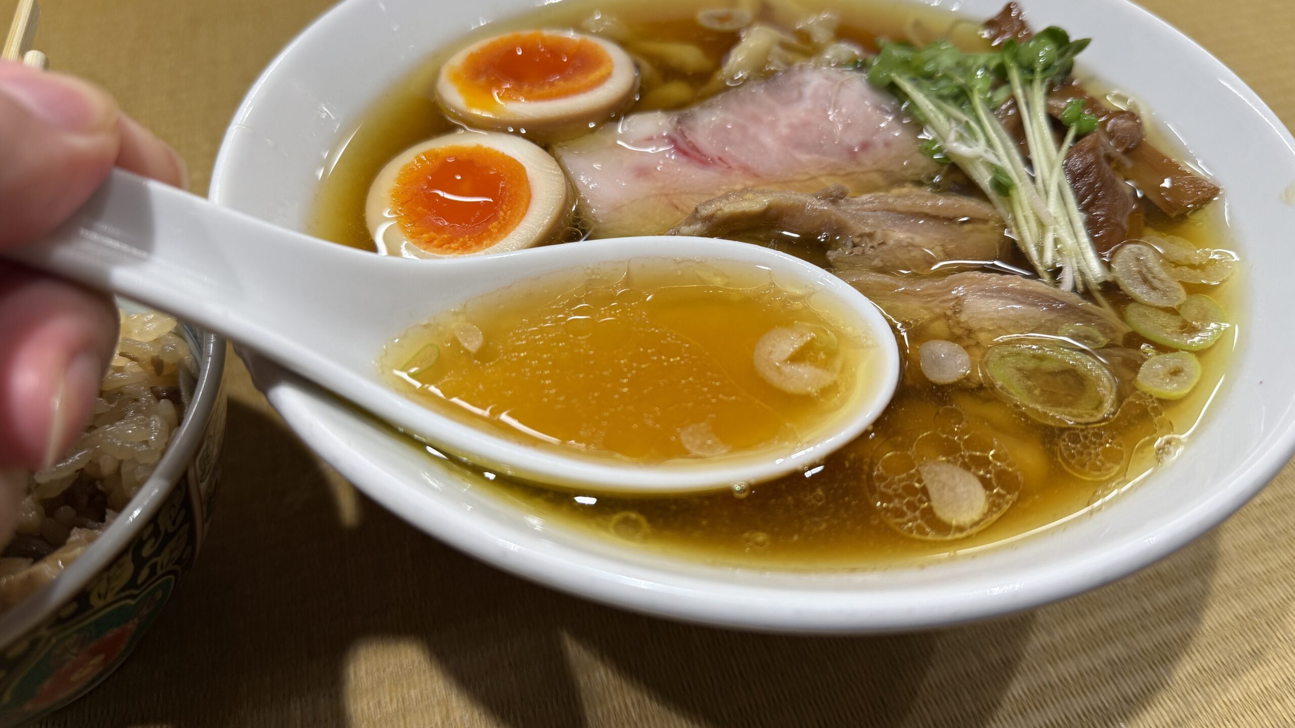 今回は『味玉中華そば(1,050円)』と『親鶏飯(320円)』を選択しました。