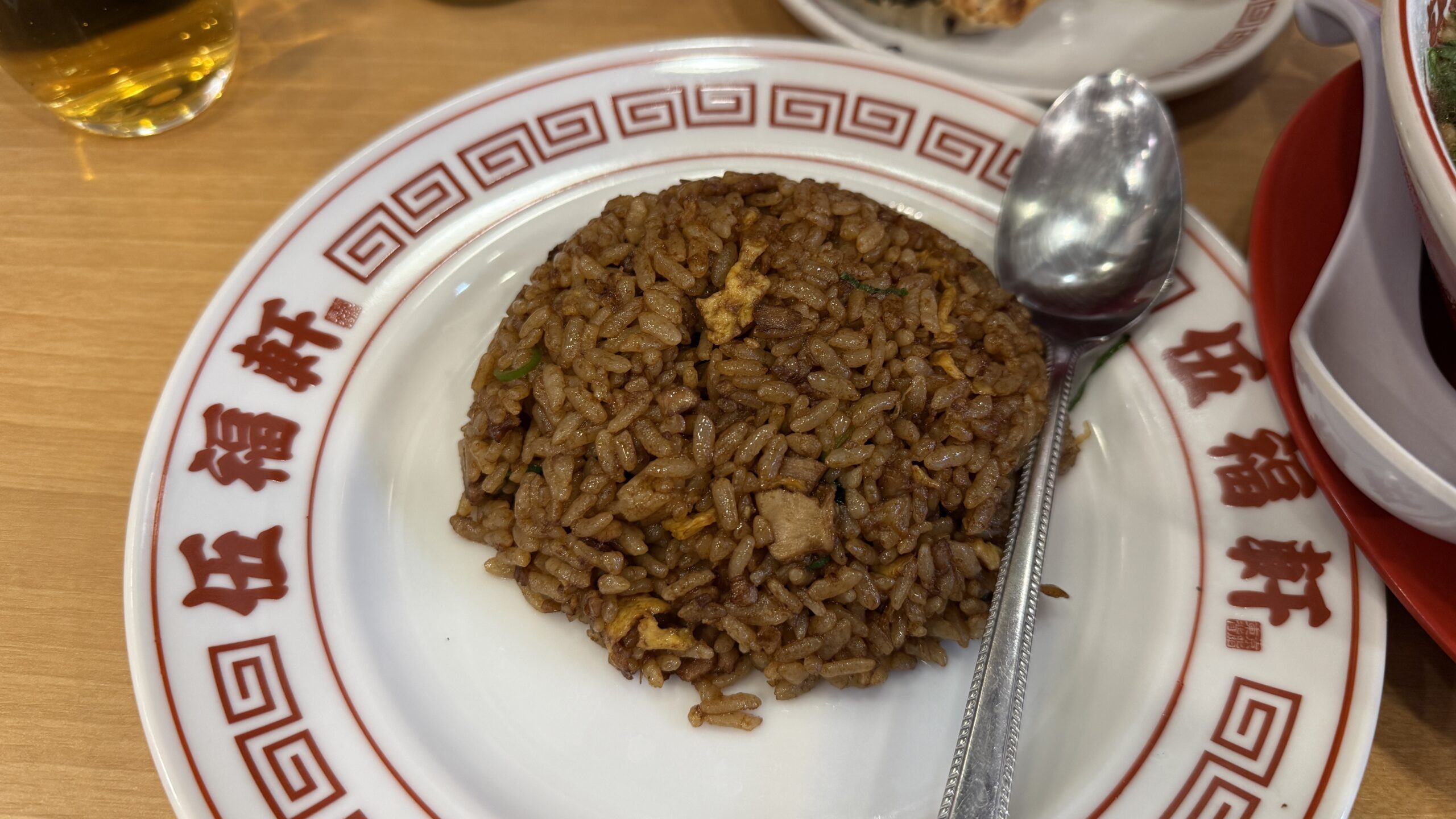 黒ヤキメシ、餃子、背脂醤油ラーメンがセットになっています。