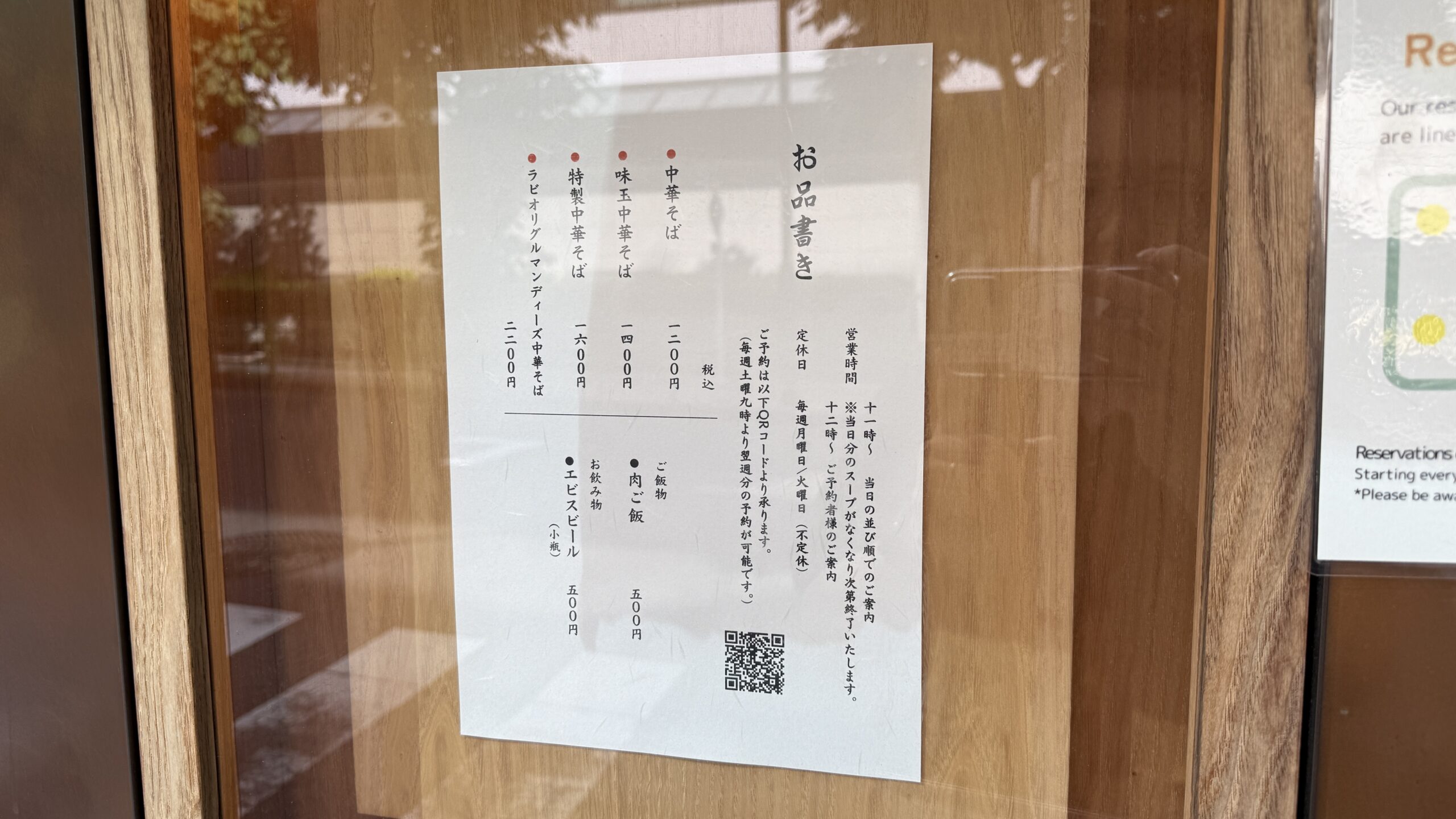 今回は『特製中華そば(1,600円)』+『肉ご飯(500円)』を選択しましたので合計2,100円です。