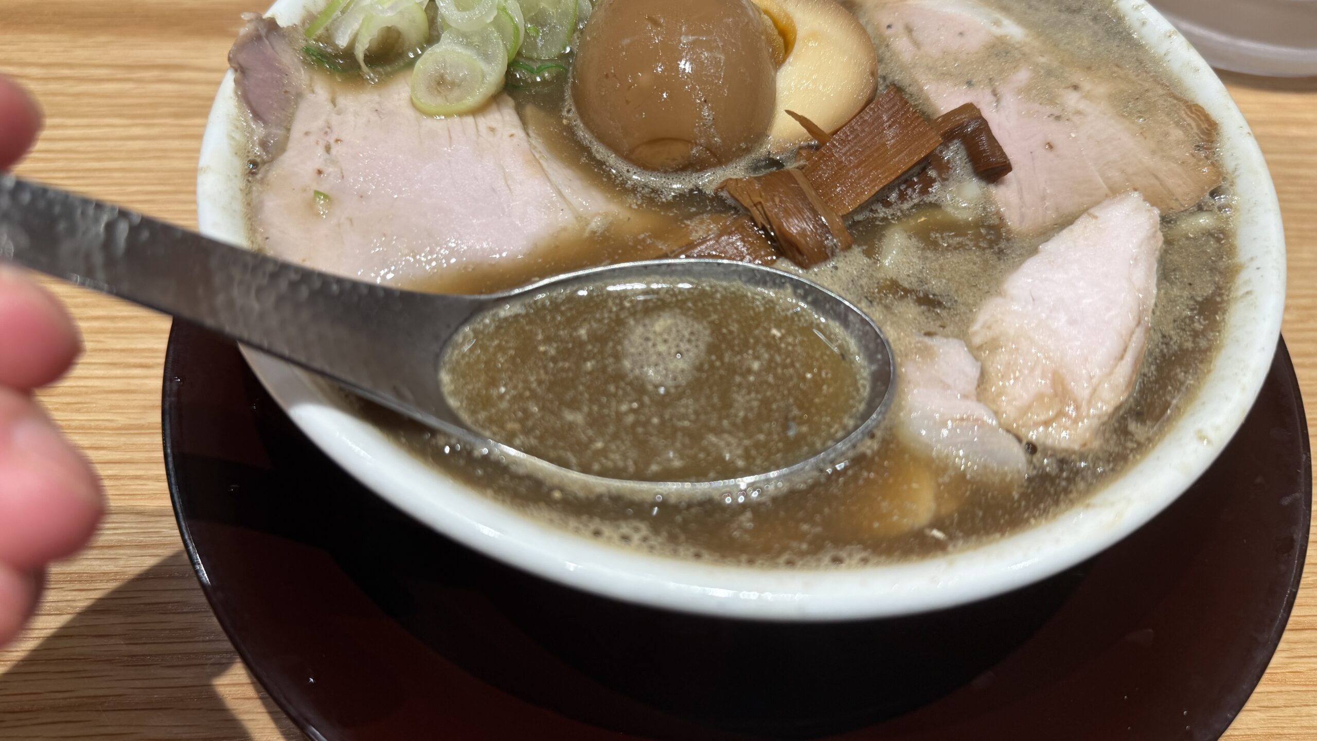 味玉単体で食べるというよりもレンゲにスープと味玉を一緒にすくって食べるのがおすすめです。
