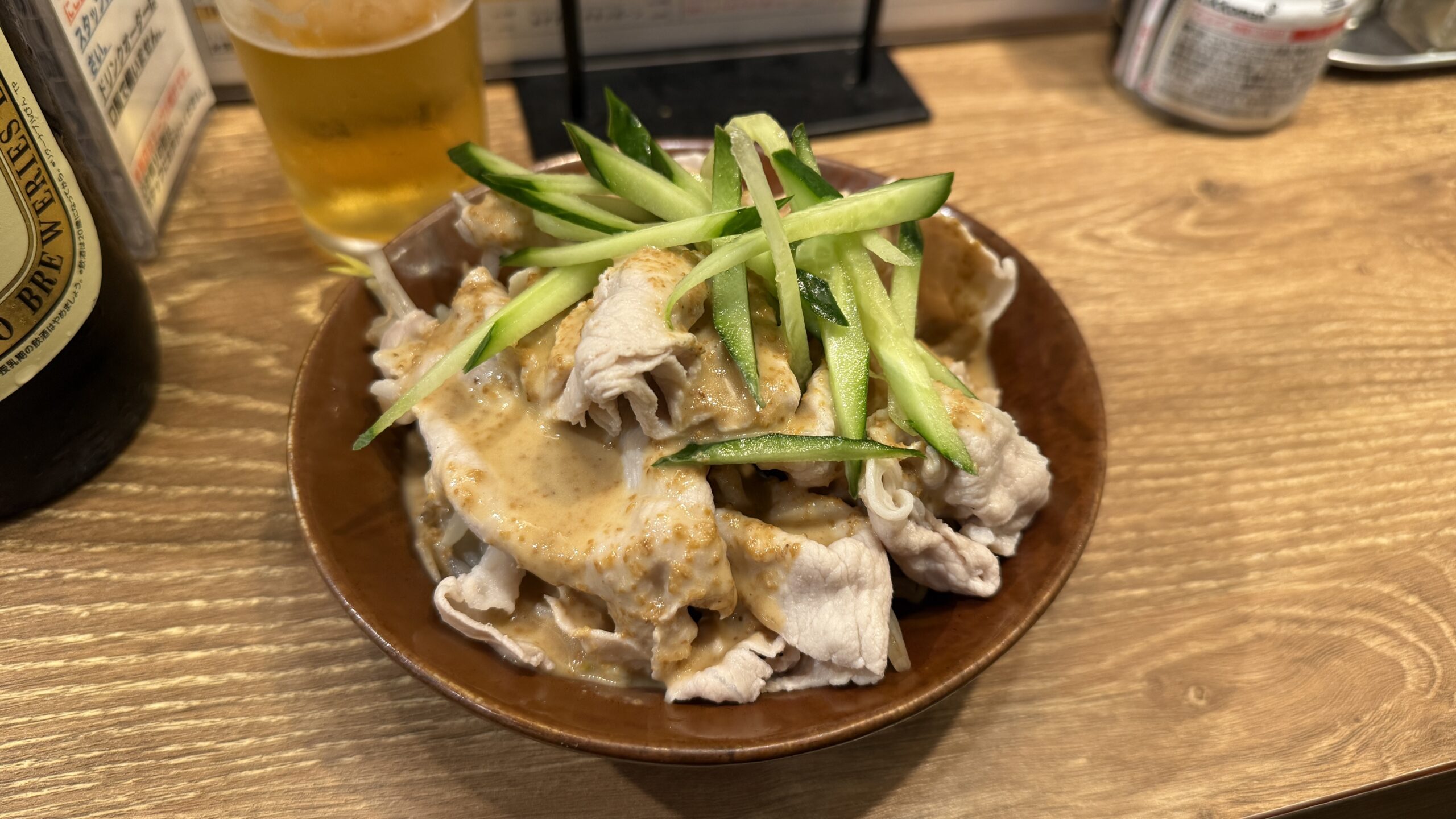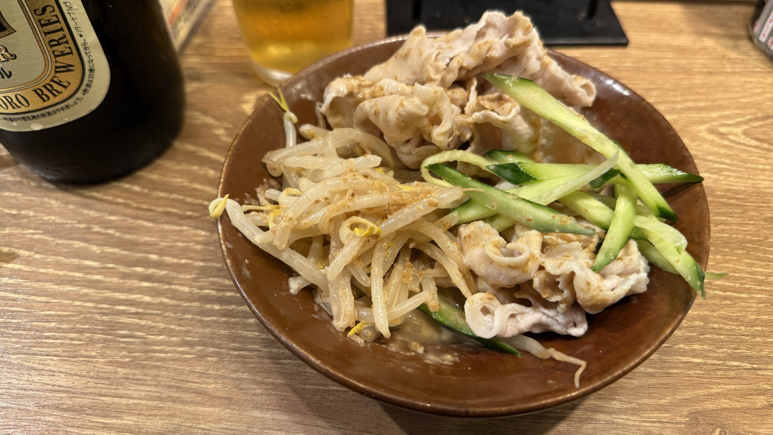 豚肉ときゅうり、茹でもやしにゴマダレをかけたというシンプルなメニューです。