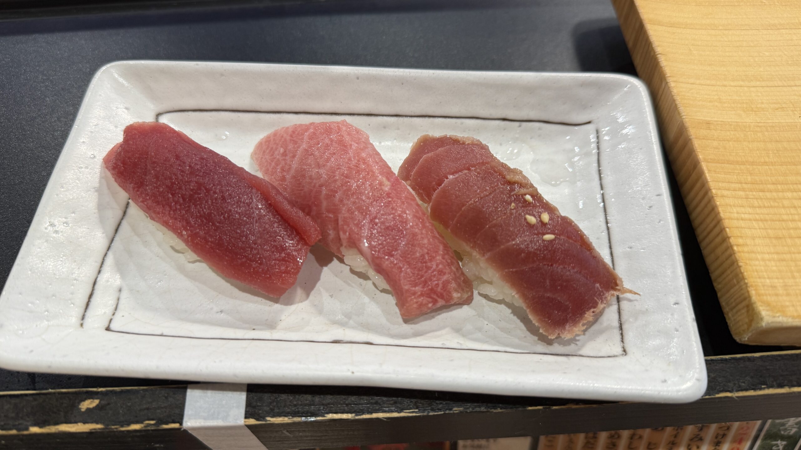 この3貫でしたら、さすがに中トロが美味しかったです。