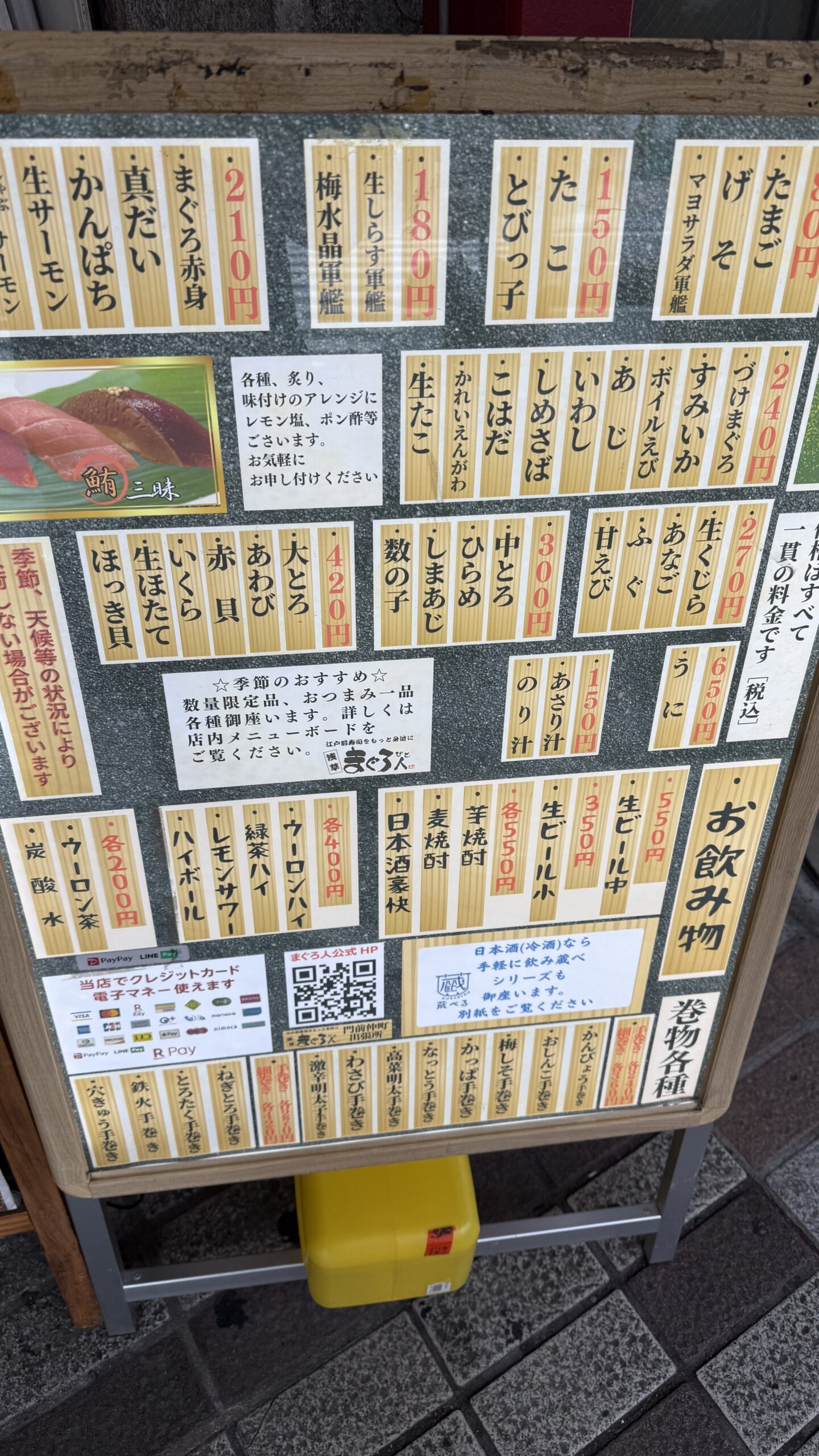 支払い方法:現金、クレジットカード、各種電子マネー、QRコード