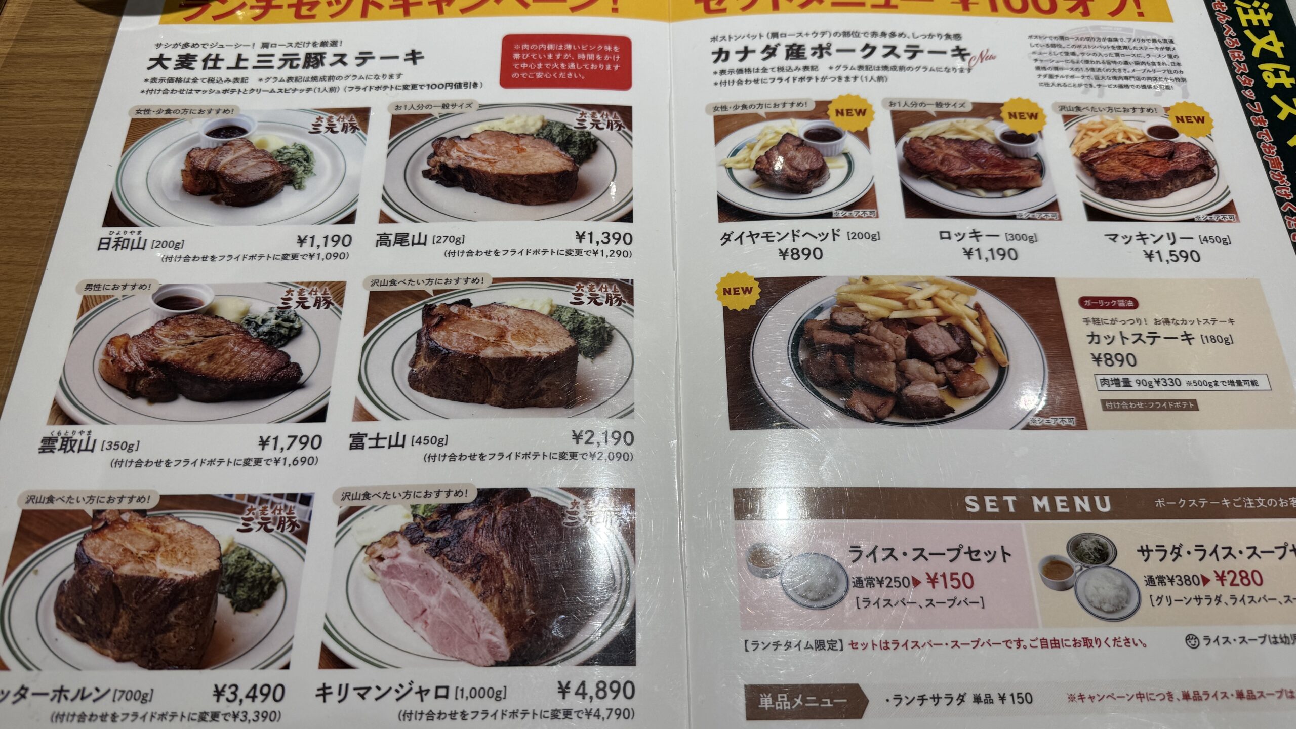 - 東京・神奈川県を中心に展開する店名の通りポークステーキが売りのチェーン店