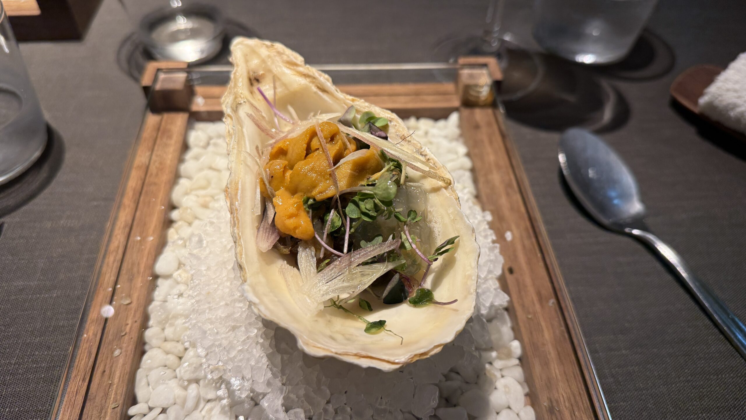 牡蠣は長時間コンフィをしており濃厚なクリーミーさを感じつつ、サザエが食感的なアクセントを加えています。