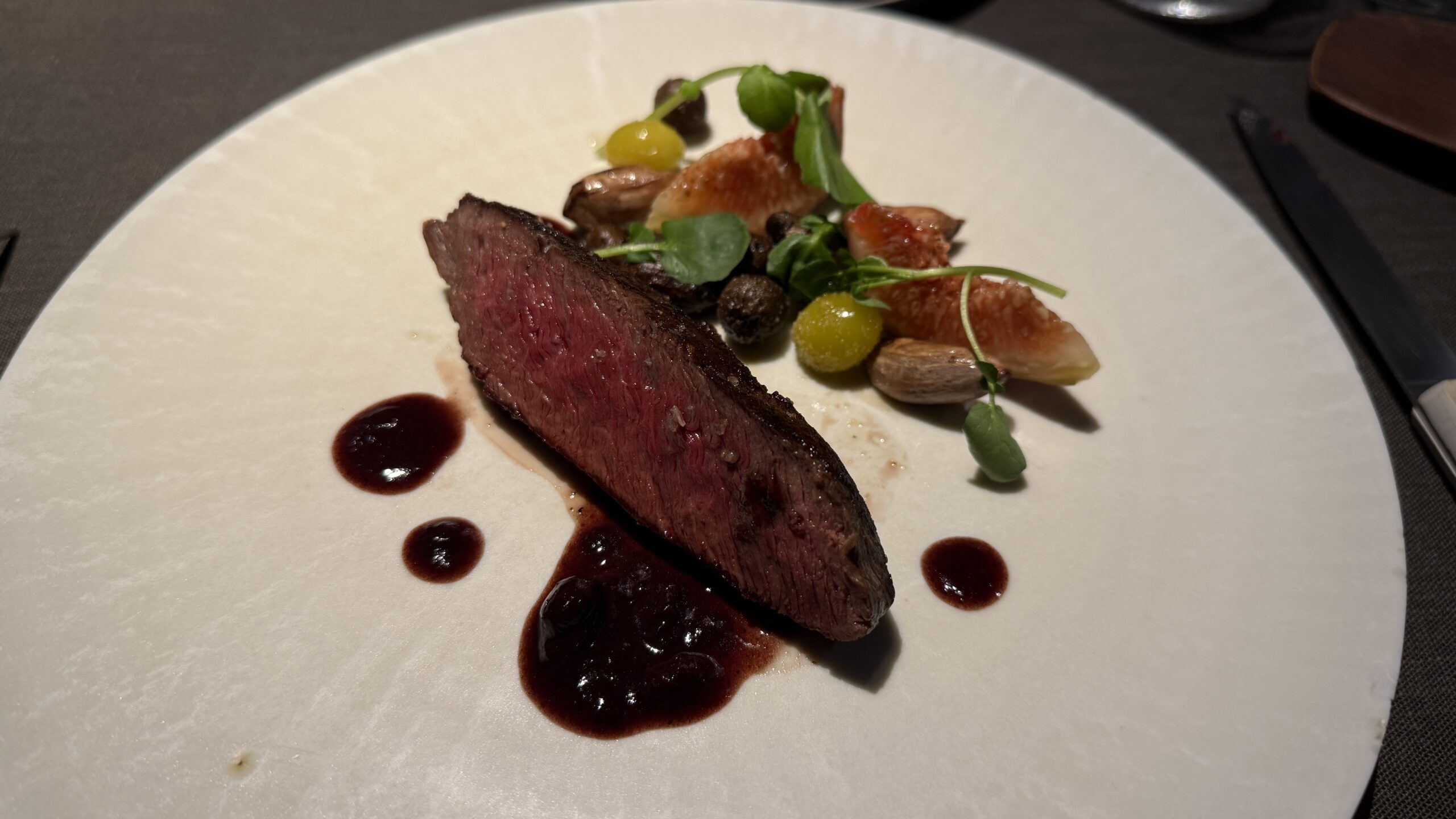鹿肉にブルーベリーソースがかけられています。