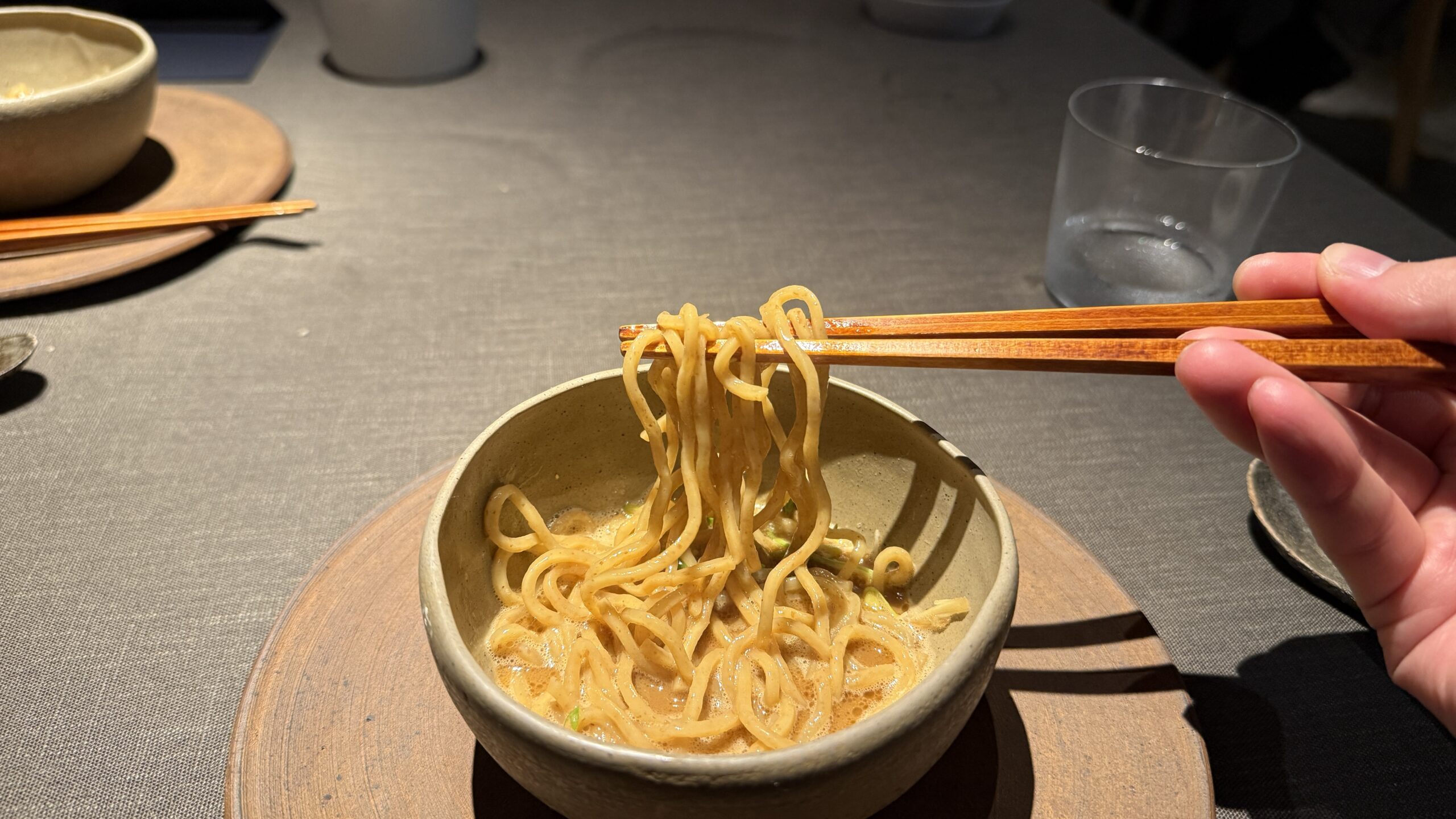麺は全粒粉入りで麦をしっかりと感じる味わいですが、食感はややパスタっぽい印象を受けます。