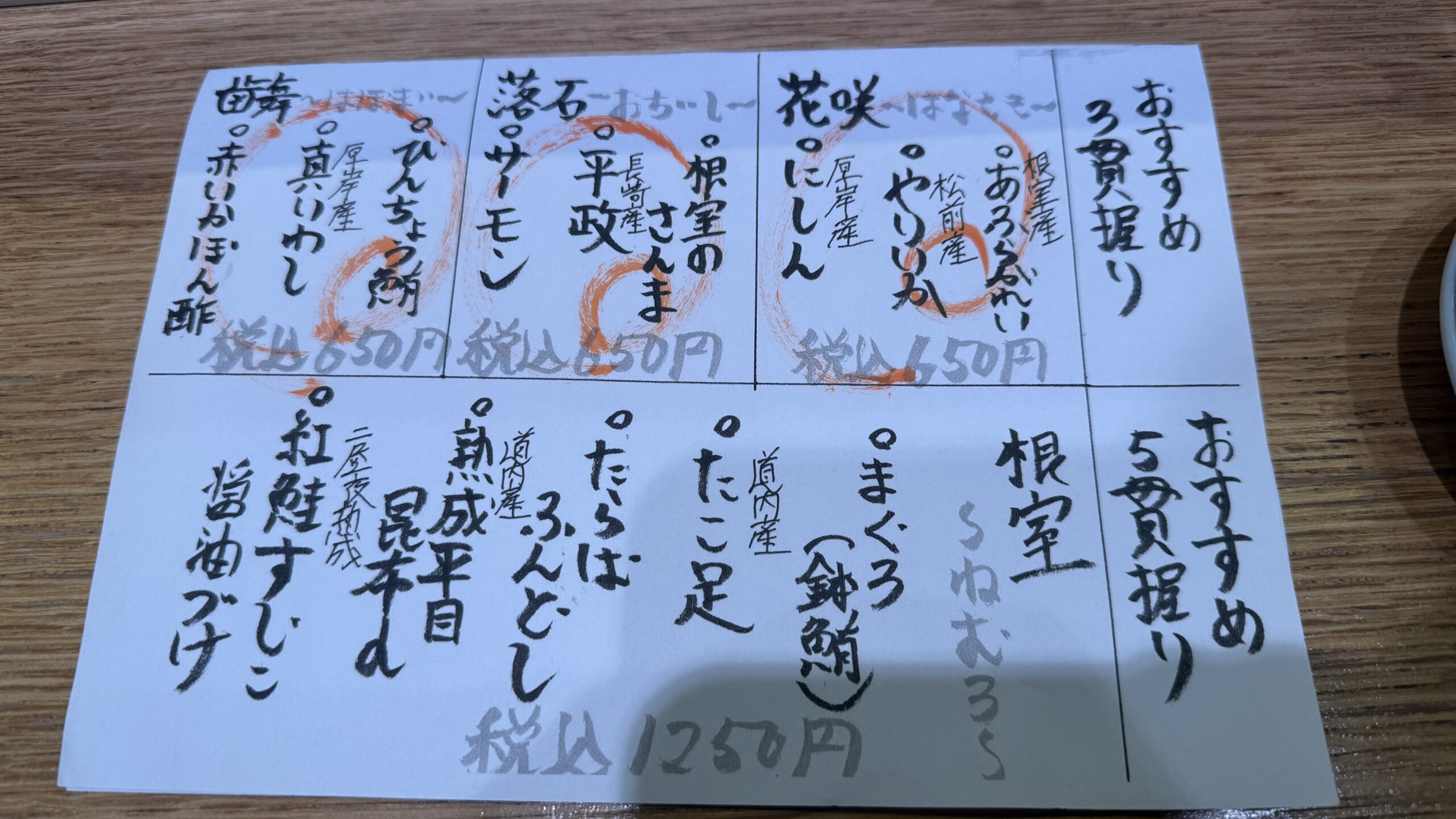青魚、イカ、貝類、北海道ならではのネタは回転寿司チェーンよりもクオリティが高いのですが、マグロなどの他のネタは回転寿司チェーンと同等だけど値段はいっちょ前という印象です。