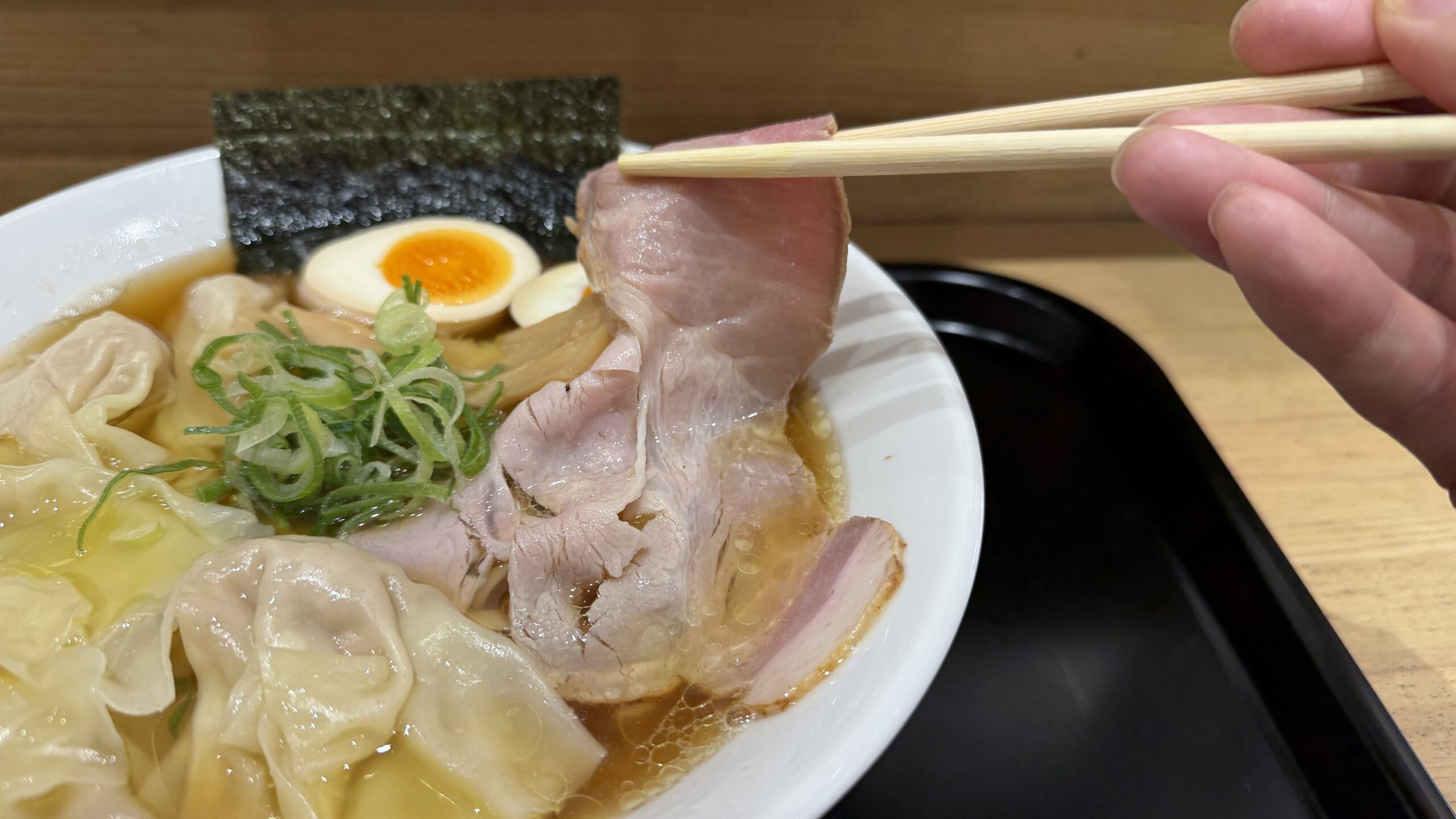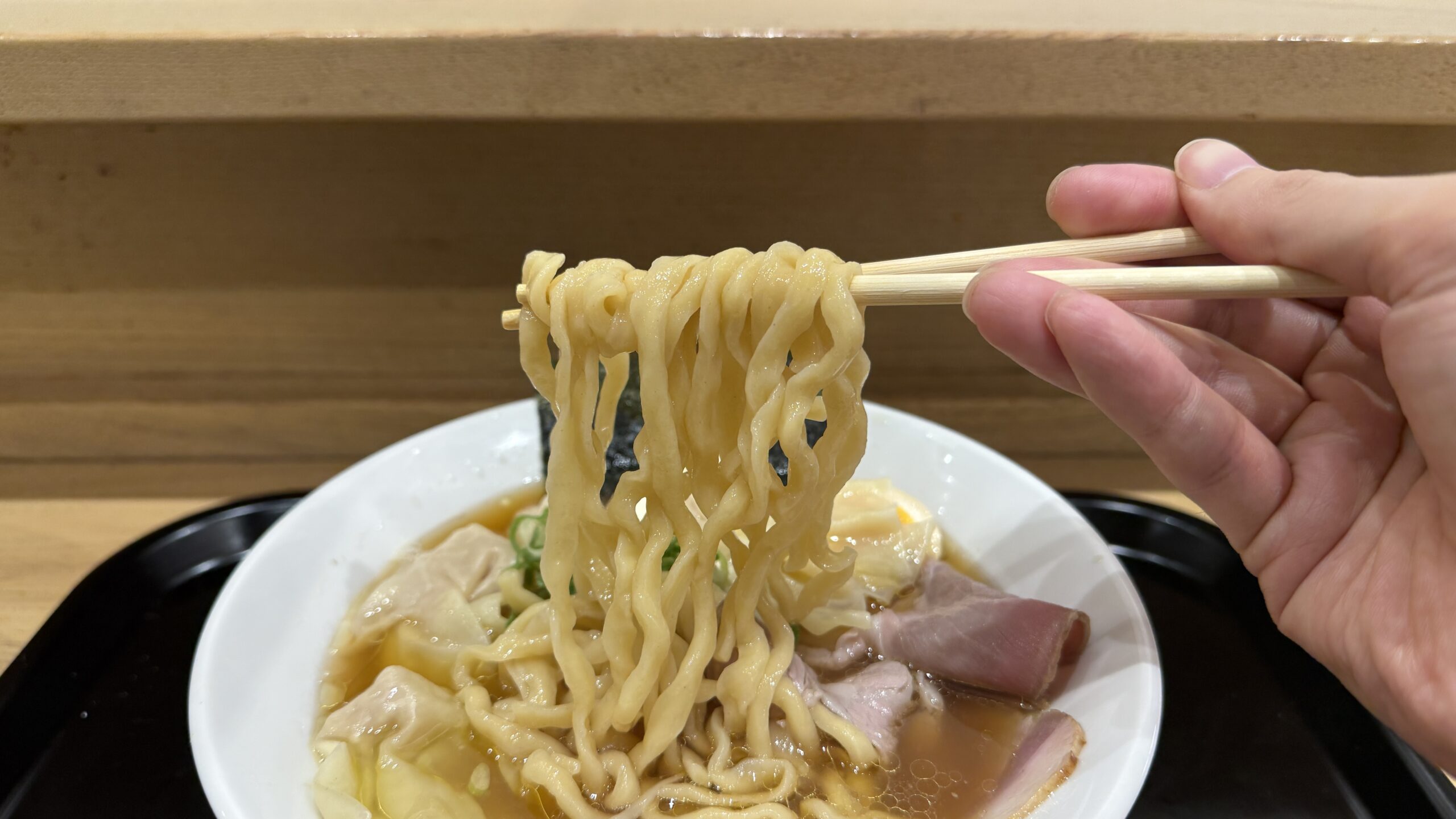レアチャーシューやワンタンが入っている点も、フードコートのラーメンとしては珍しさがあります。