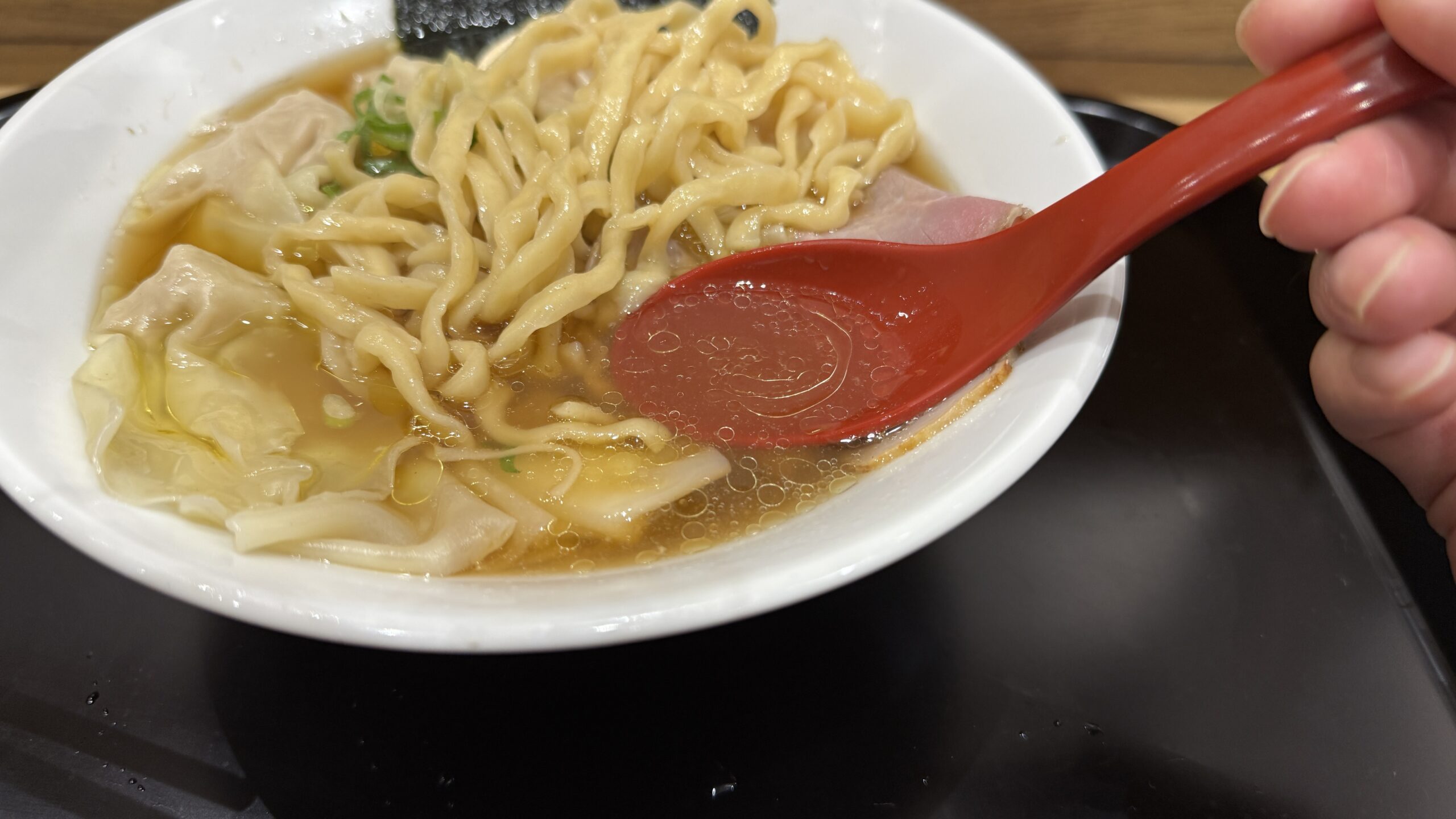 提供直後は皮が少し硬めで、わんたんらしいチュルっとした食感よりも、しっかり噛ませるタイプに感じました。