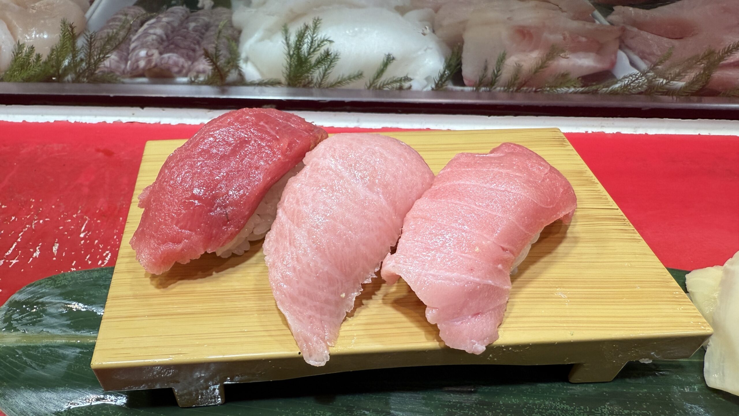 赤身・中トロ・大トロの3点盛りで、しかも本まぐろです。