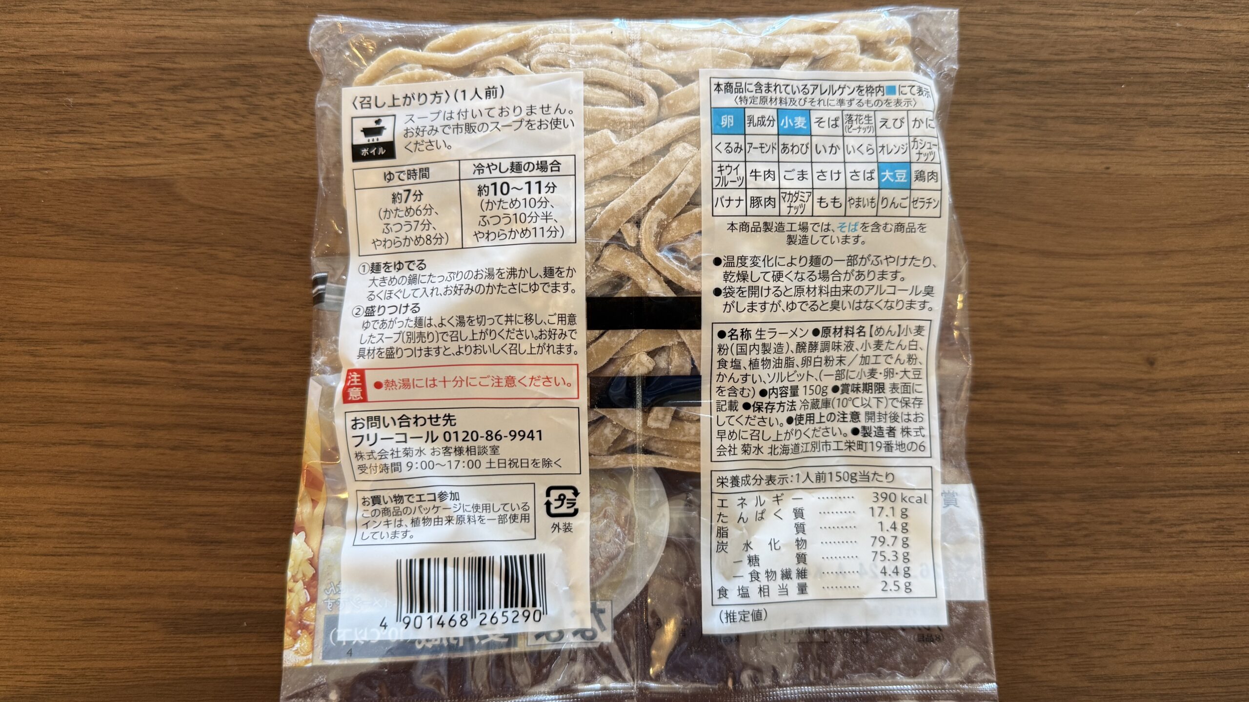 ちなみにカロリーとしては高いのですが、タンパク質量が多く脂質が少ないので麺単体では優秀ですね。