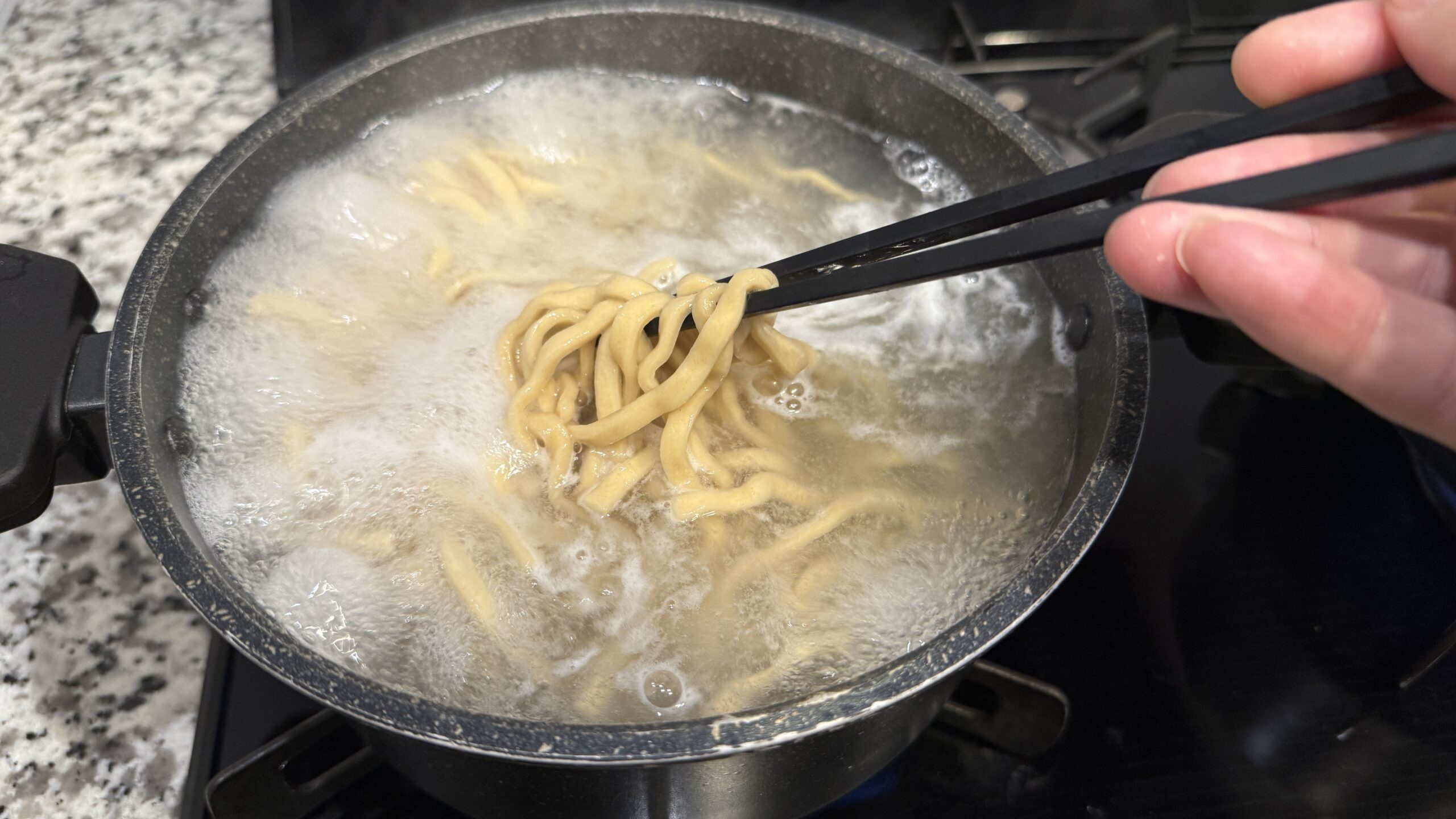 茹でていると家が二郎系のお店っぽい匂いに包まれます。