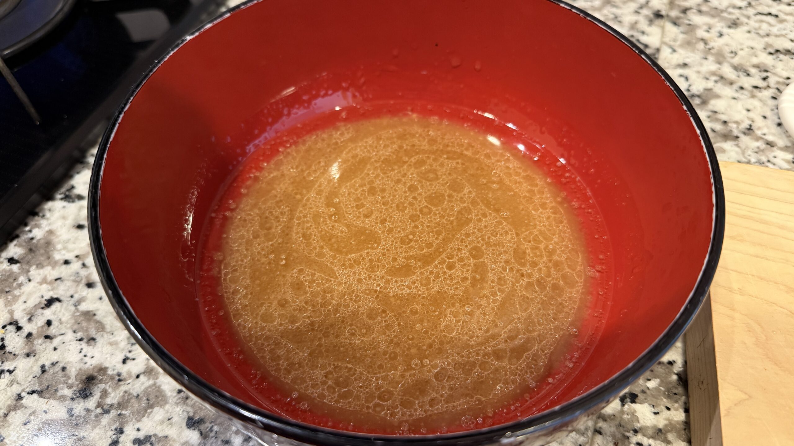 豚スープは触るとかなりアブラが入っており固まっていることがわかります。