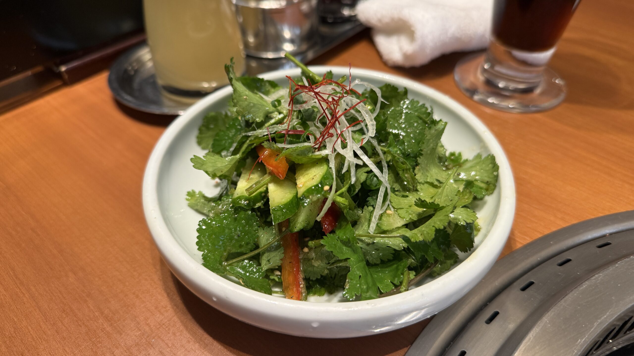 パクチーと塩・ゴマ油って感じですね。。