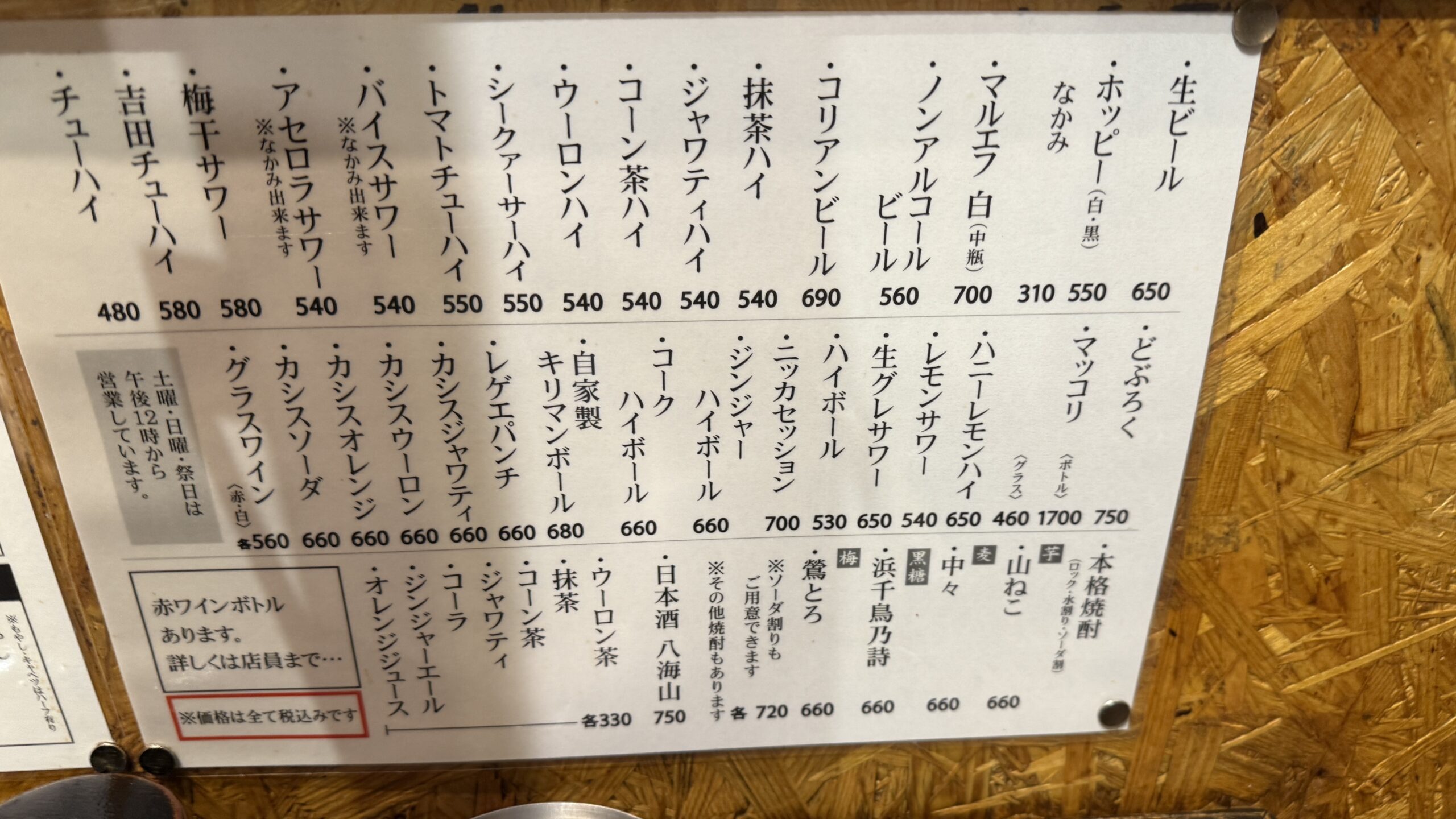 【東京・門前仲町】初代吉田 門前仲町店 ドリンク4杯+13品 2人で約12,000円【2025年1月訪問】