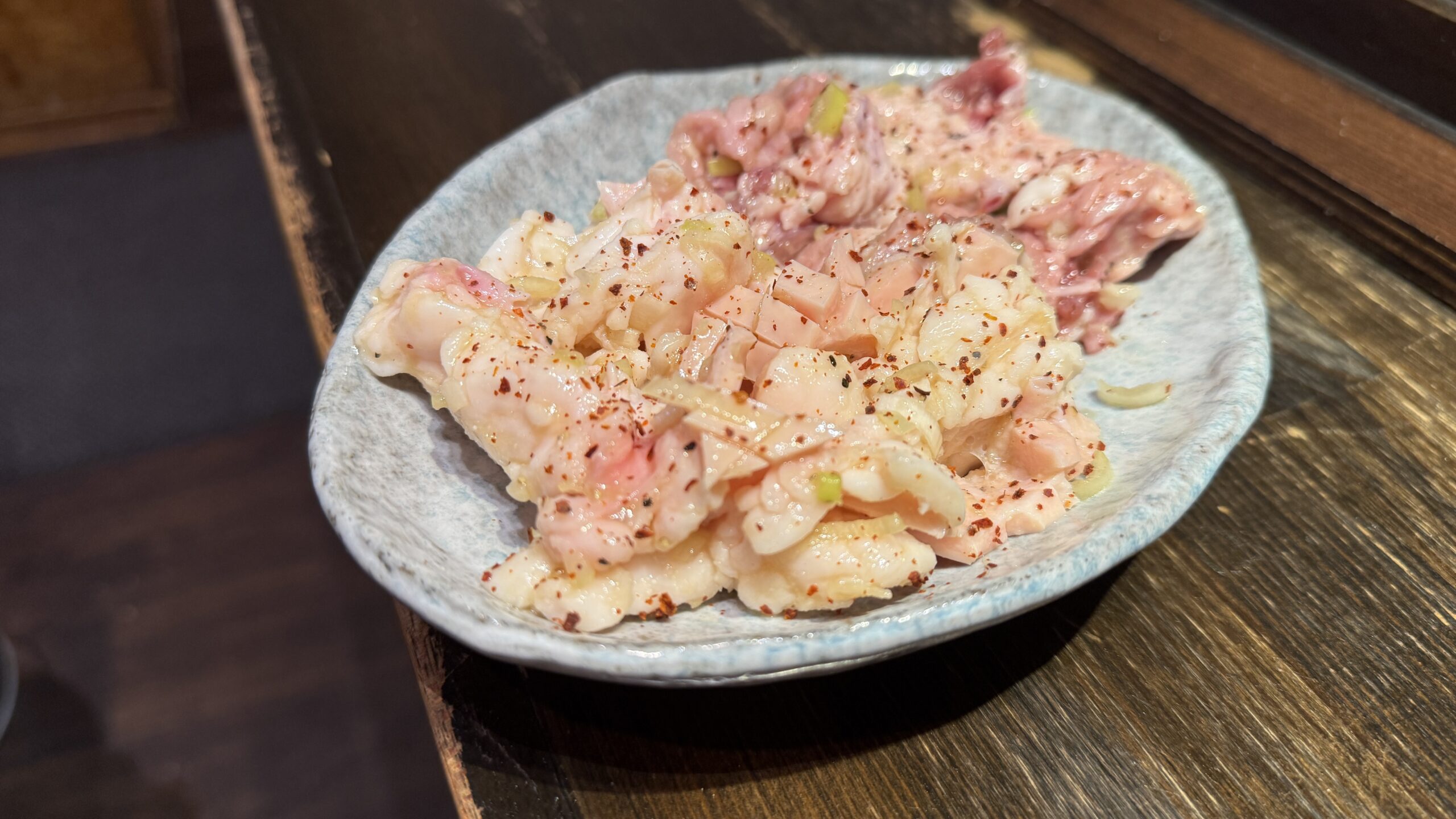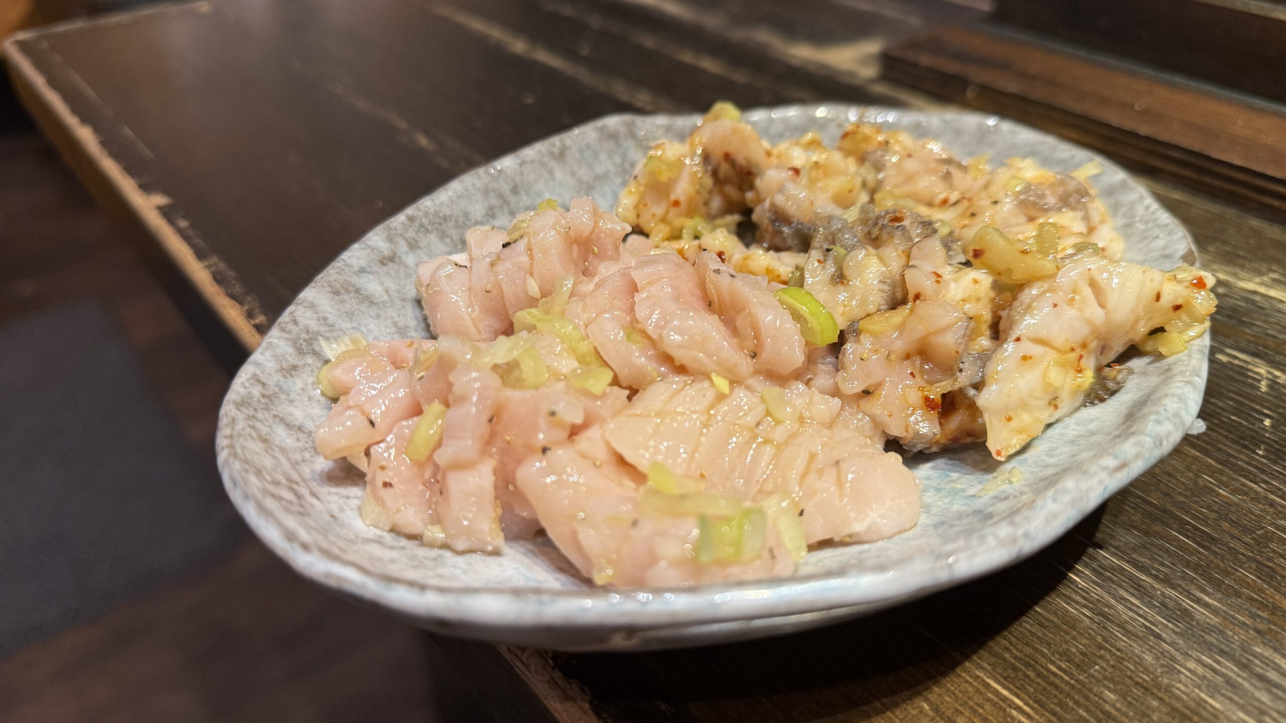 コリコリとした食感に脂を落とさずに付けた状態で提供されるので、脂の旨味を感じられます。