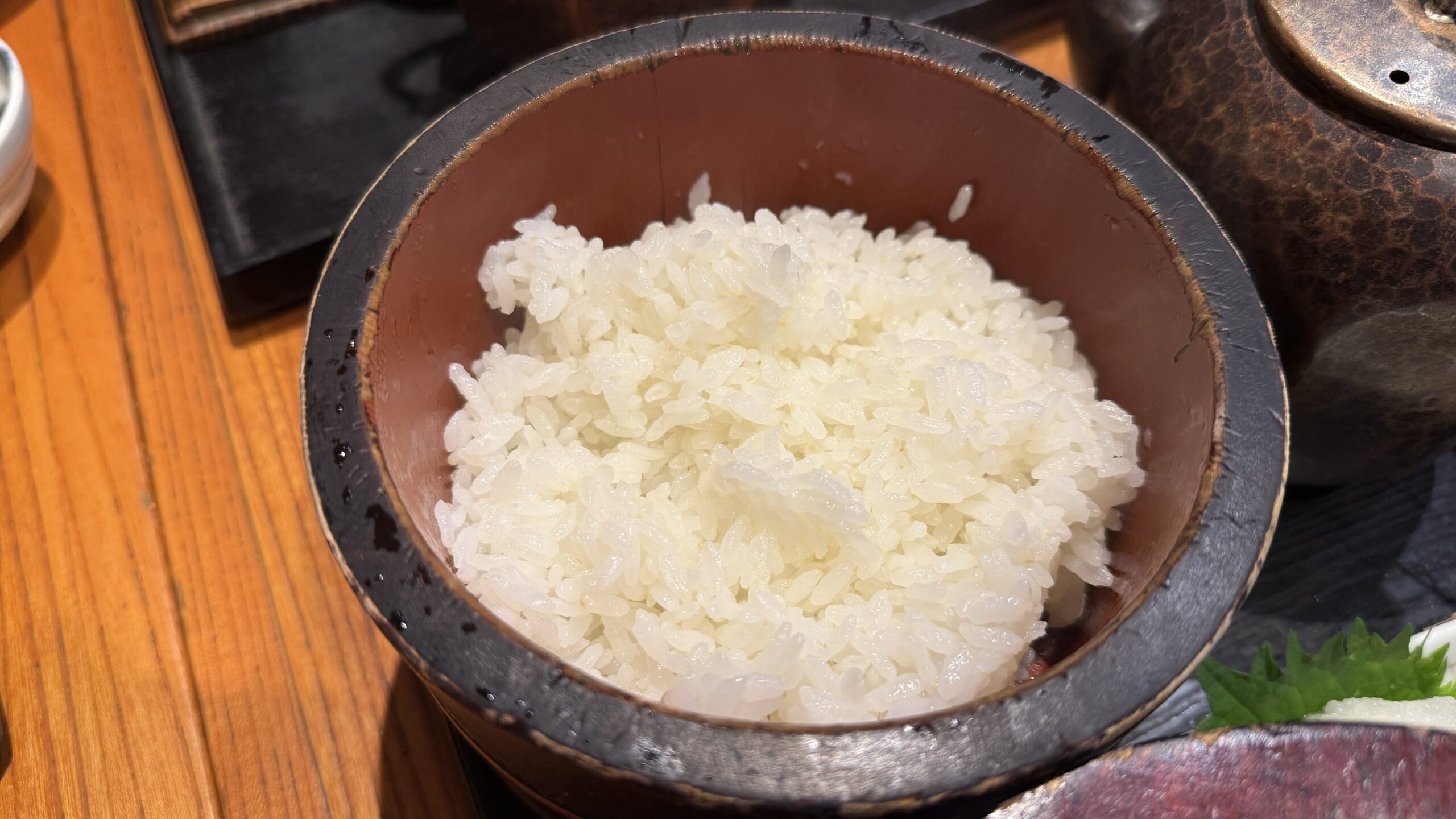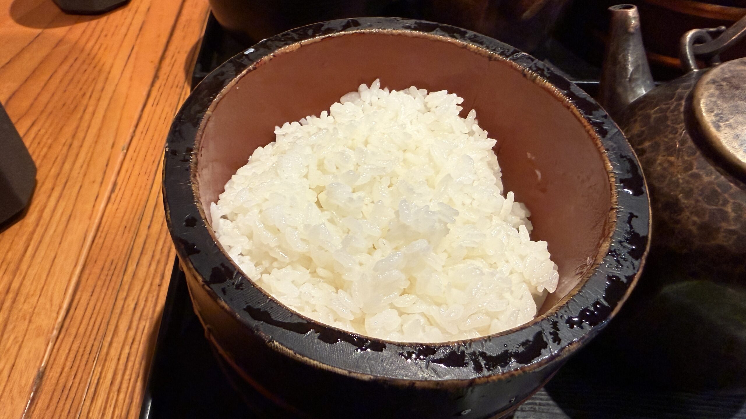 また、旅館のようにおひつに入っているので、常に温かい状態で食べることができます。