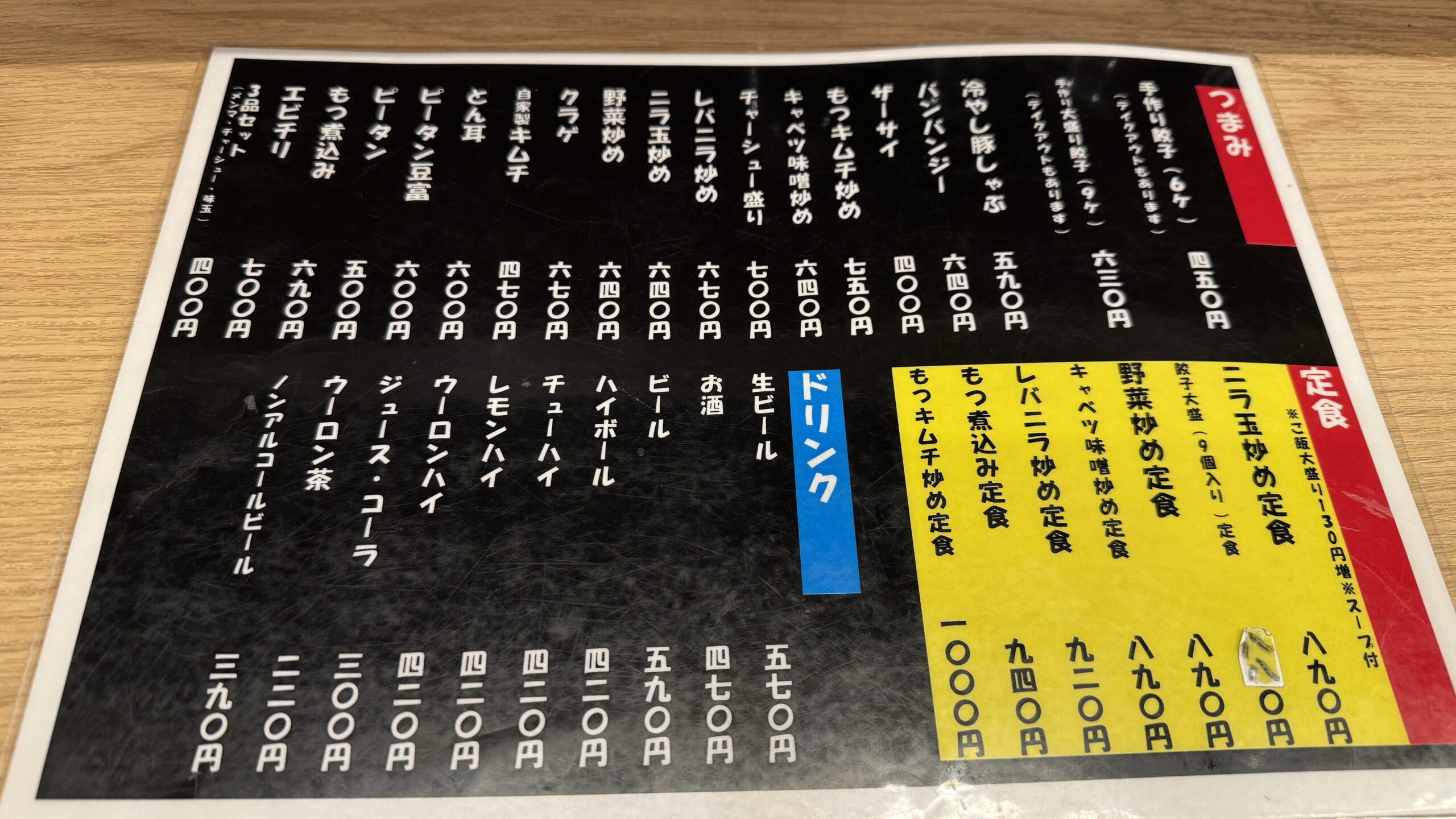 メニューにもつ煮があるのですが、おそらくこのもつを炒めたんじゃないかと思います。