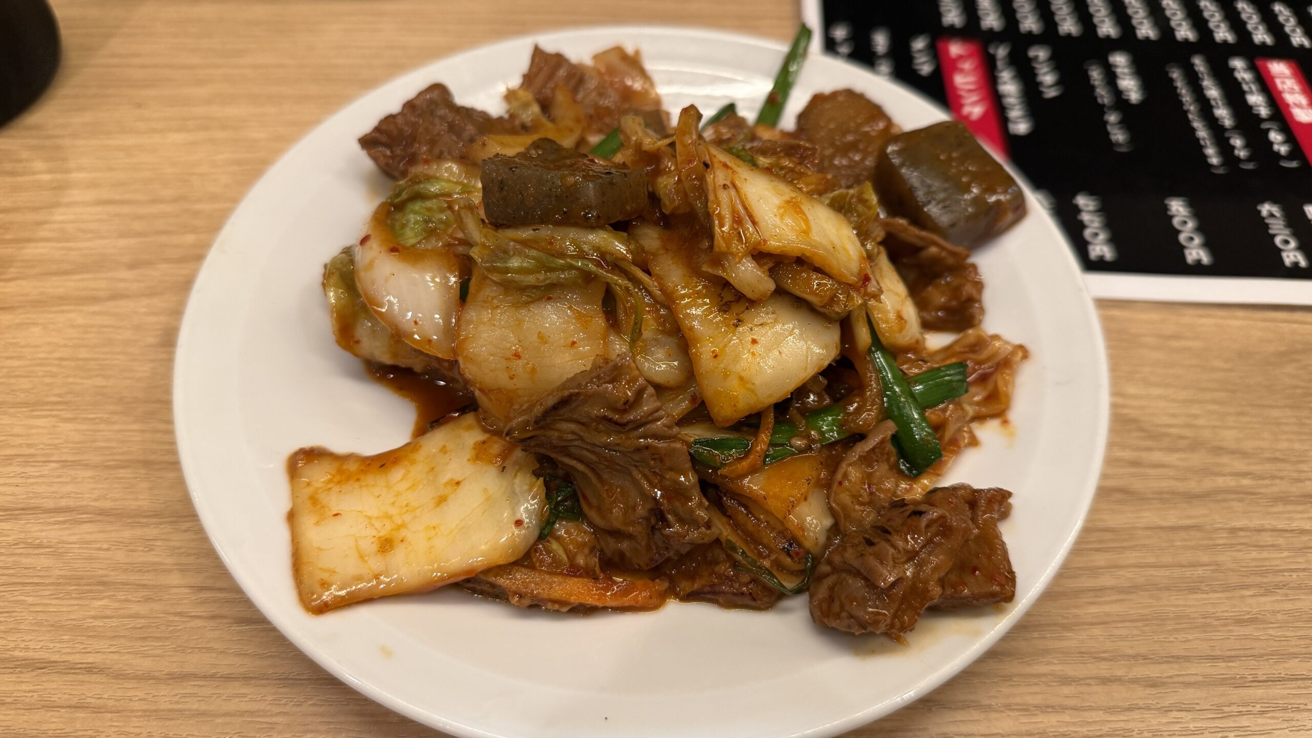 キムチはシャキッとしていますが、炒めることで水分が出ていくるのと、やはりもつ煮を使用しているからだとは思いますが、全体的に水分量が多いベチャっとした印象ではあります。